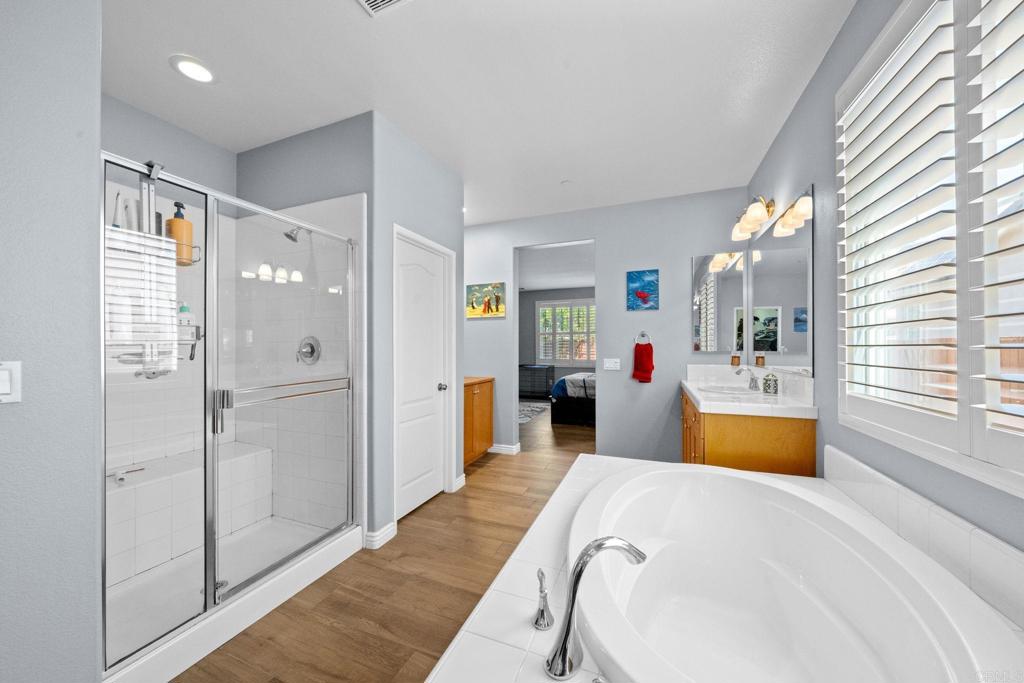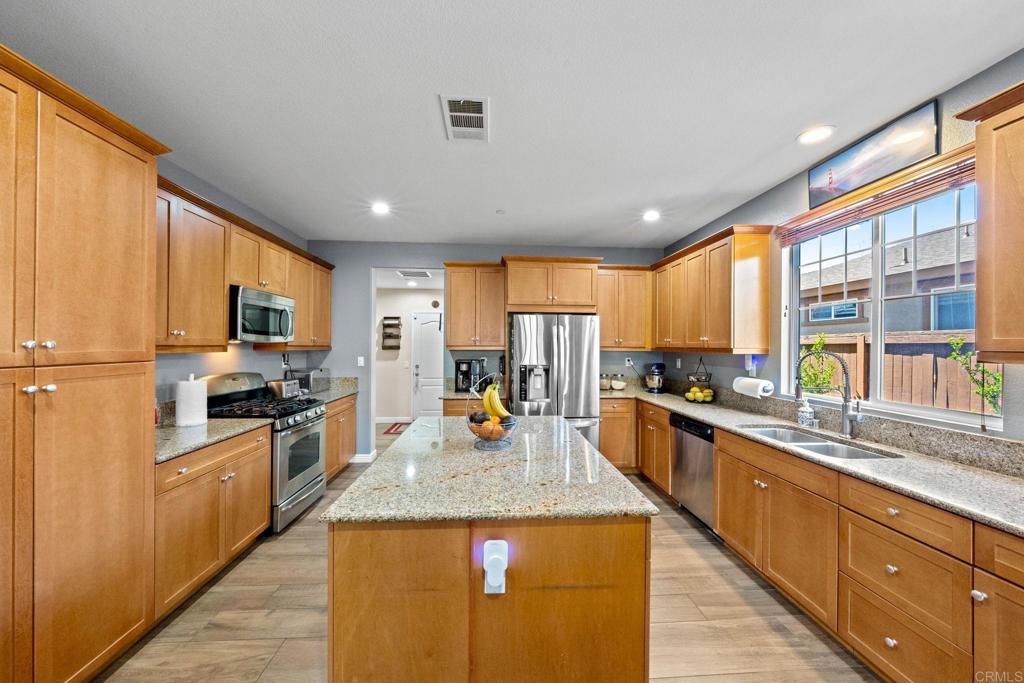 Amazing opportunity for a stunning home in the highly desirable Eureka Springs community of Escondido. This spacious 4-bedroom, 3.5-bathroom home with optional 5th bedroom offers 3,198 square feet of beautifully designed living space on an expansive 8,718 square foot lot. Nestled in a quiet cul-de-sac, this home combines elegance, comfort, and modern conveniences, making it the perfect retreat for families and entertainers alike! From the moment you step inside, you’ll be captivated by the open floor plan, soaring vaulted ceilings, and an abundance of natural light. The gourmet kitchen is a chef’s dream, featuring granite countertops, stainless steel appliances, ample cabinetry, and a large island that seamlessly flows into the inviting living and dining areas. Thoughtful upgrades such as plantation shutters, custom flooring, and designer finishes add a touch of sophistication throughout the home. The flexible layout includes a downstairs office or den, ideal for remote work or a guest suite, while the upstairs boasts a versatile loft space perfect for a playroom or additional lounge area. The primary suite serves as a private sanctuary with a spa-like bathroom, dual vanities, a soaking tub, and a walk-in closet. Step outside to an entertainer’s paradise, where the spacious backyard offers endless possibilities. Whether you’re unwinding in the above-ground spa, hosting gatherings, or simply enjoying the serene surroundings, this outdoor space is designed for relaxation and enjoyment. The three-car garage provides ample storage and parking, while the home’s solar panels and dual-zone air conditioning enhance its energy efficiency. Located in a vibrant neighborhood with two parks, scenic hiking trails, and open spaces, this home is also just minutes from shopping, dining, and top-rated schools. Don’t miss your chance to own this exceptional property in one of Escondido’s most sought-after communities. Schedule a private tour today and experience the beauty of 448 Kennedy Court for yourself.