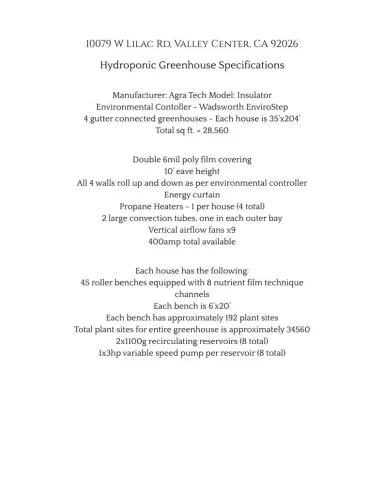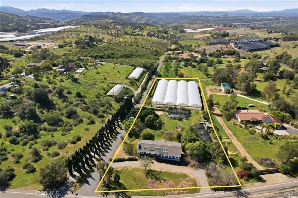 Looking for a property that can live, earn, and grow at the same time? Welcome to 10079 W Lilac Rd in Escondido, a rare working farm and income-producing property where lifestyle and entrepreneurship come together on 2.46 scenic acres with sweeping valley views stretching to the ocean on clear days. At the heart of the property sits a charming 3-bedroom, 2-bath main residence currently operating as a successful Airbnb, offering immediate income potential or the perfect owner’s retreat. Inside, the home captures the relaxed Southern California lifestyle with bright living spaces and panoramic views that turn everyday moments into something extraordinary. Downstairs, a separate 1-bedroom apartment creates additional flexibility for guest accommodations, rental income, staff housing, or a private office/studio, making the property ideal for owners who want to live and operate a business from home. What truly sets this property apart is the fully operational 29,000-square-foot hydroponic greenhouse. Professionally equipped and production-ready, this massive growing facility opens the door to commercial agriculture, specialty crops, nursery production, or innovative ag-tech ventures. The greenhouse has also supported agricultural training initiatives, including programs serving military Veterans pursuing careers in farming and controlled-environment agriculture. For entrepreneurs, investors, and growers, it represents a rare chance to acquire an established infrastructure rather than building from scratch. The 2.46-acre lot offers room to expand operations, create additional outdoor growing areas, or design a private farm retreat surrounded by rolling hills and natural beauty. The elevated setting provides breathtaking sunset views and coastal breezes, blending rural tranquility with convenient access to the greater San Diego region. Located in the desirable North County Escondido agricultural corridor, the property provides easy access to I-15, local farm markets, and regional distribution routes, making it ideal for both lifestyle buyers and business-minded owners.