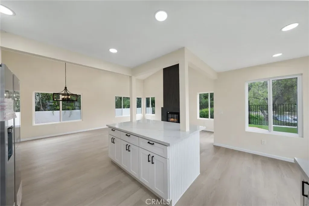 Welcome to 1723 Larkhaven Glen in Escondido, a fully renovated single story home that blends modern design with easy, low maintenance living. This 3 bedroom, 2 bathroom home offers 1,524 square feet of thoughtfully updated space. Step inside to an open, airy layout featuring light grained LVP flooring throughout and vaulted ceilings that create a bright, expansive feel. The living room is centered around a sleek, modern fireplace, adding both warmth and style. The kitchen has been completely upgraded with all new cabinetry, quartz countertops, and stainless steel appliances including a 36-inch stove, opening seamlessly to the main living and dining areas, perfect for everyday living and entertaining. Both bathrooms have been fully remodeled with a clean, modern aesthetic, featuring updated vanities, fixtures, and designer finishes that give the home a fresh, move in ready feel. All new windows have been installed to ensure your new home is energy efficient. Outside, enjoy newly installed turf for a clean, low maintenance yard, along with added privacy thanks to no rear neighbors. New rain gutters have been installed. The corner lot location offers additional space and a sense of openness that is hard to find. If you are looking for a turnkey home with modern upgrades, privacy, and a functional layout, this one checks all the boxes.