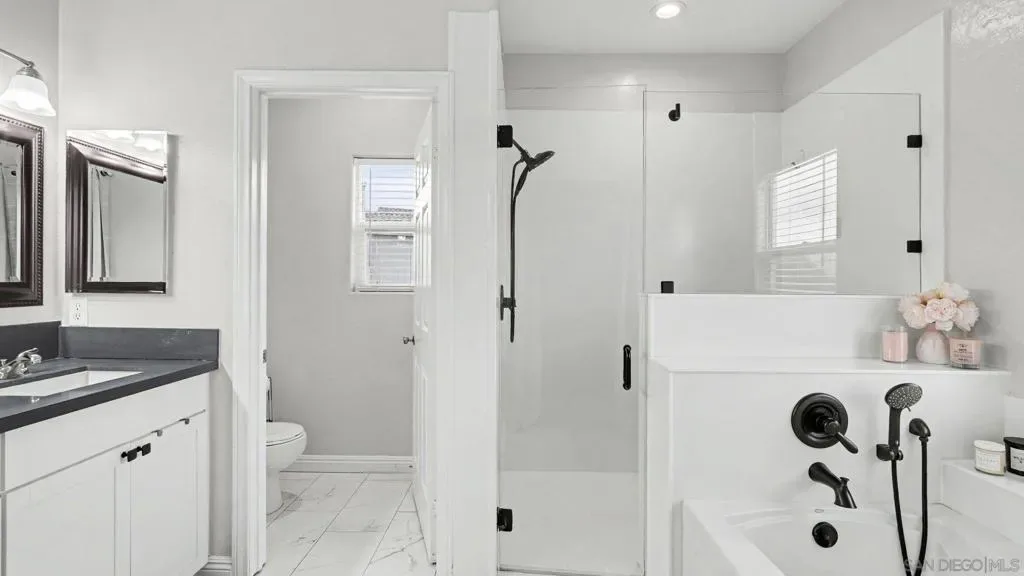 Welcome to your elevated retreat in the highly sought-after Country Club community of Escondido. This beautifully upgraded tri-level home offers approximately 2,240 square feet of light-filled living space with a true pride of ownership and a “like-new” feel throughout. Featuring four bedrooms, two and one-half baths, and a versatile bonus room ideal for a home office, gym, or additional living area, the home is designed for both comfort and functionality. The updated kitchen showcases modern finishes and opens to the main living spaces, highlighted by vaulted ceilings, a cozy fireplace, and abundant natural light. Recent upgrades include refreshed flooring, fresh interior paint, and recessed lighting, creating a move-in ready experience. The backyard has been thoughtfully redesigned to maximize both beauty and ease of living, featuring maintenance-free turf, brand-new pavers ideal for outdoor dining and BBQs, and a terraced layout that captures sweeping panoramic views—perfect for relaxing or entertaining. Additional highlights include OWNED SOLAR & WATER SOFTENER, MASSIVE DRIVE WAY that can park up to 10 CARS, and NO HOA or Mello-Roos. Conveniently located near Interstate 15 with easy access to shopping, dining, and all that North County has to offer, while still enjoying the tranquility of an established neighborhood. Immediate occupancy available—this is a standout opportunity you won’t want to miss. Solar Panels are OWNED & PAID-OFF. WATER SOFTENER SYSTEM is owned and in the Garage.