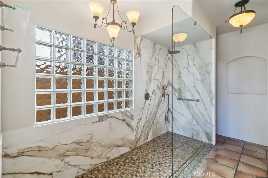 The inviting family room and kitchen feature custom-cut tile flooring, creating a cohesive and naturally elegant feel. Every room is enhanced with solid wood doors, upgraded lighting, and designer ceiling fans, reflecting the home’s exceptional craftsmanship.