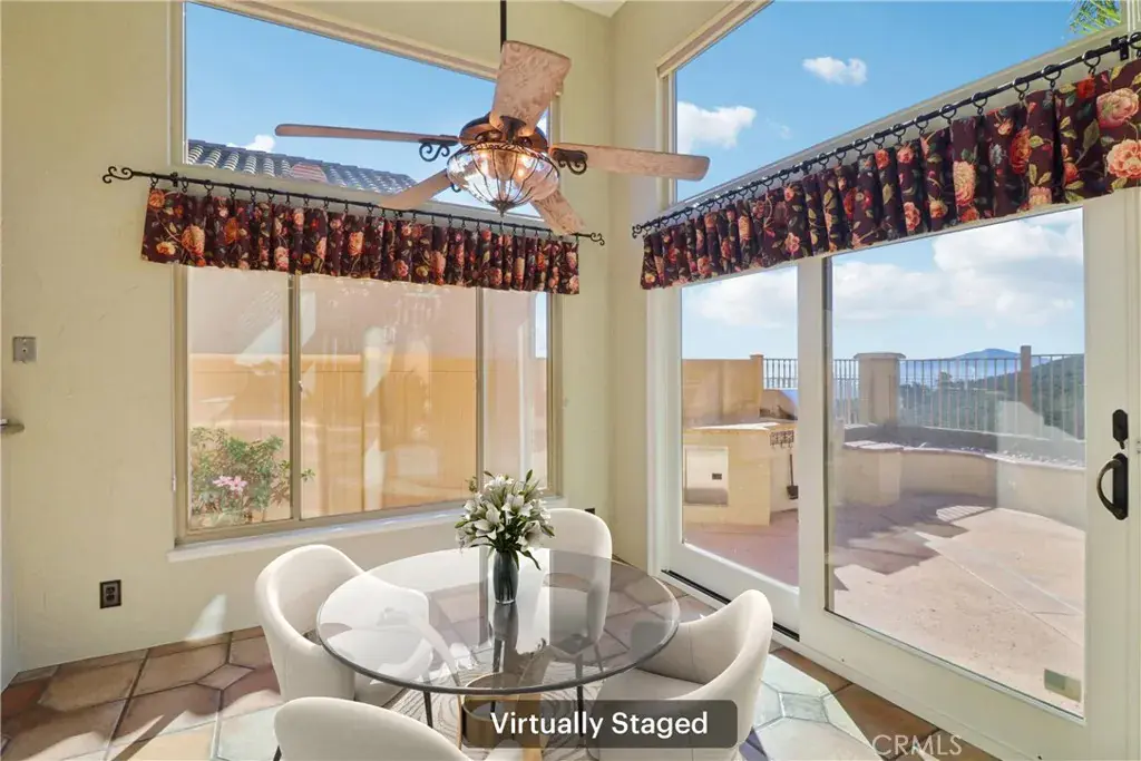 The gourmet kitchen is appointed with rich wood cabinetry, a massive built-in refrigerator, and thick granite countertops—ideal for both entertaining and everyday living. Step outside to the outdoor BBQ area and take in breathtaking panoramic views that feel endless. Low-maintenance turf and lush tropical landscaping make the backyard both beautiful and effortless. Lets not forget there is plenty of room for all your toys in the built out 3 car garage.