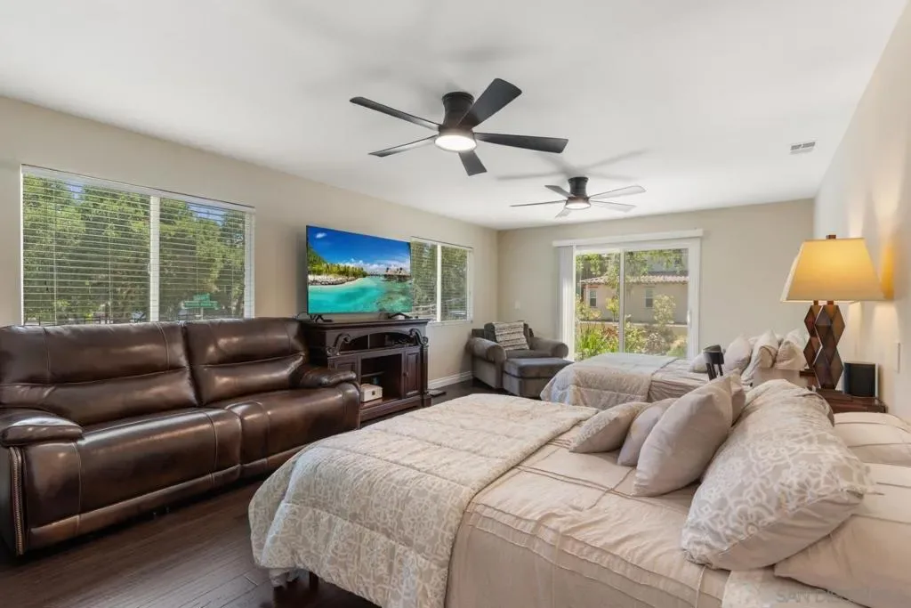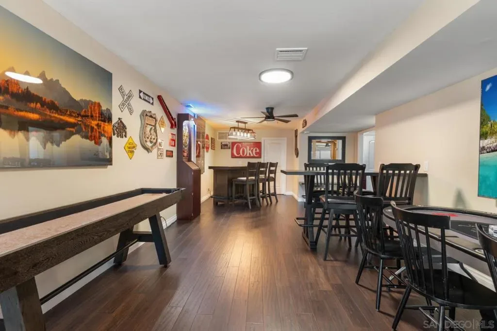 Perched on a spacious corner lot in the quiet, desirable Mountain Meadows community, 28108 Mountain Meadow Road offers 4 bedrooms, 2.5 bathrooms, and 3,172 sq ft of thoughtfully updated living space designed for both everyday living and entertaining. Bamboo flooring flows throughout the main living areas, creating a warm and cohesive feel, while the open-concept layout connects the living room, dining area, and beautifully remodeled kitchen. The kitchen is designed for gathering, featuring a generous island that comfortably accommodates seating—ideal for hosting, casual dining, and everyday connection. A striking stone fireplace anchors the living room, complemented by expansive windows that frame peaceful, tree-filled views and fill the home with natural light. Downstairs, a dedicated game room creates a true lifestyle space—perfect for entertaining, game nights, or creating a private retreat separate from the main living areas. The primary suite offers ample space, a large closet, and direct access to the backyard, creating a comfortable and private escape. Set on a spacious lot with mature landscaping, the backyard offers a tranquil setting with patio space, natural hillside, and room to customize. Located in Escondido with convenient access to golf and dining, this home blends space, flexibility, and an inviting lifestyle.