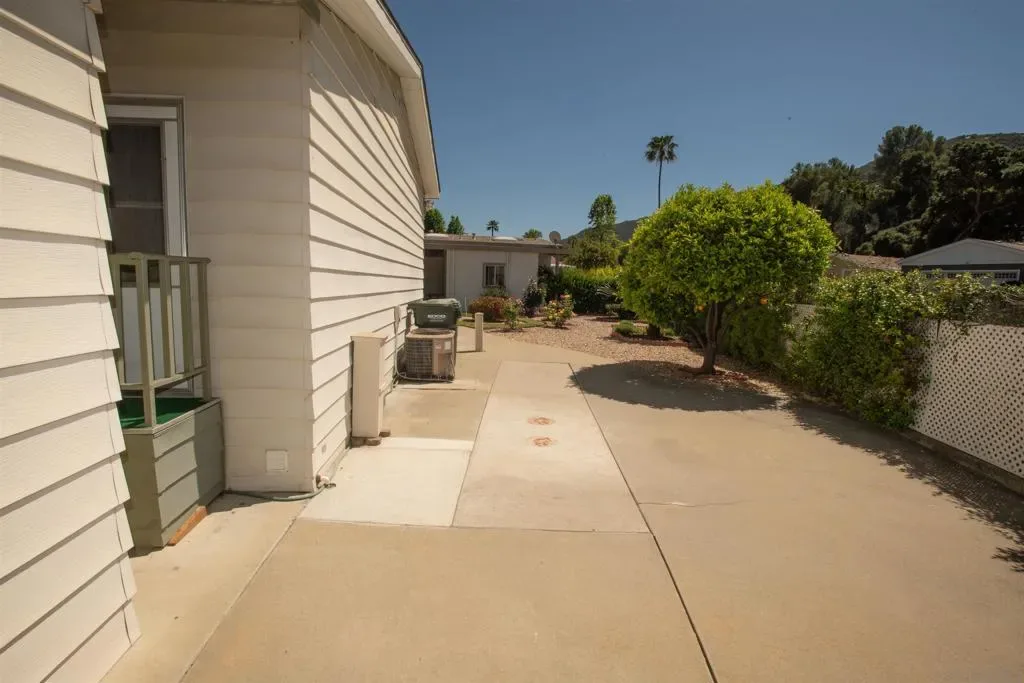 Experience easy, comfortable living in Champagne Village, a gated 55+ community connected to Lawrence Welk Resort. This updated home is move-in ready and built for simple, low-maintenance living. What stands out right away: Front porch with a beautiful rose garden, Bright interior with new luxury vinyl plank flooring. Clean, modern finishes throughout. Key features: 2 bedrooms and 2 remodeled bathrooms. Spacious primary suite with washer and dryer in the closet, New luxury vinyl plank flooring throughout, Electric stove with double oven, Whole house fan for efficient cooling, Outside, you get a yard with grass for the grandkids kids to play, plus two detached storage units with built-in shelving. Easy to maintain and easy to lock up when you travel. Community perks: Guard-gated entry for added security, Clubhouse with regular social events, Pool, tennis, and pickleball, Access to resort amenities next door, Location: Quick freeway access, Easy drive to San Diego and Riverside, If you want a home that feels clean, updated, and ready from day one, this one delivers