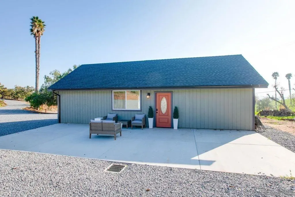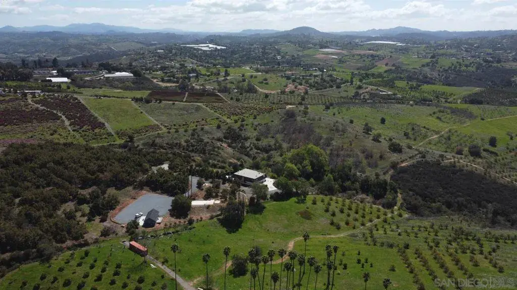 Discover a picturesque haven in Escondido with this luxurious countryside estate, nestled in the rolling hills of North County. Offering a perfect blend of opulence and tranquility, this expansive 21-acre property is surrounded by flourishing avocado and citrus groves, creating a serene retreat. The main residence boasts over 5,000 square feet of living space, featuring 5 bedrooms, 3 full bathrooms, and 3 half bathrooms, including master suites on both levels and a convenient downstairs guest bedroom. Fully remodeled in 2022, the home exudes luxury with a grand foyer, a spiral staircase, and elegant finishes throughout. Entertainment is effortless with a dedicated home theater and a stunning, private below-ground pool, perfect for relaxation. Additionally, a newly remodeled detached ADU, completed in 2024, offers over 800 square feet with 2 bedrooms, 2 bathrooms, central air conditioning, and an attached patio deck with breathtaking mountain views. The estate’s natural beauty is further enhanced by an onsite pond, native trees, and a concrete pad ideal for a pickleball court. With ample parking for over 50 cars, this property is perfect for hosting large gatherings or even wedding events. Beyond its residential appeal, this estate is a proven income-generating asset, grossing $100,000 plus on Airbnb short term rentals, with even more potential through the rental of the ADU. Whether seeking a luxurious private retreat or a profitable investment opportunity, this exceptional property offers the best of both worlds.