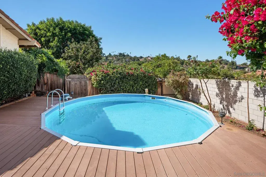 Stunningly RENOVATED VIEW HOME is primely located on a private hillside cul-de-sac. Enjoy amazing sunsets from your living room or deck. Serenity surrounds you with lush gardens & several fruit trees on a generous lot. Energy Efficient w/ 27 OWNED SOLAR panels. The expanded quartz kitchen & baths along w/ travertine & hardwood flooring will impress. Other features: above ground pool, deck & pergola, abundant parking. Your own PRIVATE PARADISE! No HOA or Mello-Roos Tax. See Links. Fruit trees galore at this Peaceful Retreat providing orange, lemon, lime, grapefruit, persimmon & avocado. The lush flora attracts butterflies & hummingbirds! The GOURMET KITCHEN, renovated in 2018, has quartz counters, designer fully-tiled backsplash, stainless appliances & multiple pull-outs. A prep/storage island w/ 2nd sink & bar seating is illuminated by dual pendants. The 5-burner gas cooktop is accented by a stately vent hood. The Bosch dishwasher is super quiet. Natural light flows through the lovely bay window & skylight. A custom wine cabinet holds 144 bottles. The fireplace was enhanced w/ an artificial log set. The rich hardwood staircase leads to a spacious primary retreat w/ ensuite bath & walk-in closet. The step-in shower boasts a bench seat & inset shelf. A renovated 2nd bath serves the other bedrooms. Lounge by the pool, BBQ, & enjoy gatherings. Large driveway=guest parking. The drywall lined garage w/ epoxy floor has many racks, cupboards, shelves & tool bench, offering storage options.