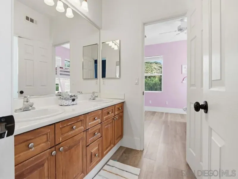 Gorgeous private 5-bedroom, 3-bath home located in the highly sought-after gated community of Rancho San Pasqual. This unique and versatile floor plan features 2 bedrooms on the main level with a full bath, formal dining room, living room, and spacious family room—perfect for multi-generational living or guests. Upstairs offers 3 additional bedrooms, including a luxurious primary suite with a large walk-in closet, plus a convenient laundry room and a loft area deal for work or study. Situated on a premium corner lot within a quiet cul-de-sac, this home offers exceptional privacy with neighbors on only one side. Enjoy stunning valley views from the backyard,kitchen, and all three upstairs bedrooms. Recent upgrades include new garage door motors for added convenience and peace of mind. The yard has been cleared of trees and shrubs, offering a blank canvas to design your dream outdoor space and customize the home to your personal taste. Rancho San Pasqual is ideally located just minutes from shopping, freeways, wineries, and local attractions. Residents enjoy access to resort-style amenities including a community pool, Olympic-size pool, basketball court,fire pit, and playground. The community is set along a beautifully updated golf course and nestled in the scenic foothills of Palomar Mountain. Families benefit from the highly regarded San Pasqual Union School District (Pre-K through 8th grade).Additional highlights include low HOA fees and no Mello-Roos.This hidden gem offers a perfect blend of privacy, views,convenience.List of upgrades in the remarks.VA assumable 2.5% 850k Upgrades: 1- Brand new AC Unit and heat furnace within the last year 2-New Kitchen sink faucet 3-New bathroom faucet downstairs bathroom 4-All toilets have been replaced within the last two years 5-Brand new floors with baseboards throughout the house.