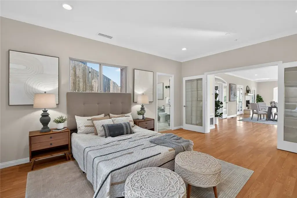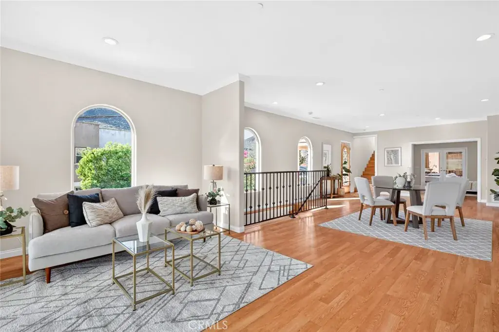 The entry level features a spacious living room, a bedroom suite, a flexible office or den, and an enclosed patio ideal for year-round use. The lower level offers an upgraded kitchen, an oversized dining area for gatherings, a full bath, and a generous laundry and utility room. French doors open to the backyard for easy indoor-outdoor living.