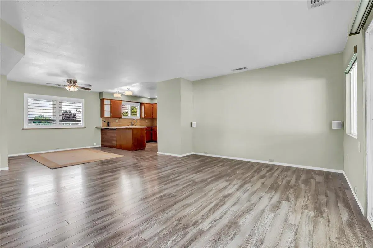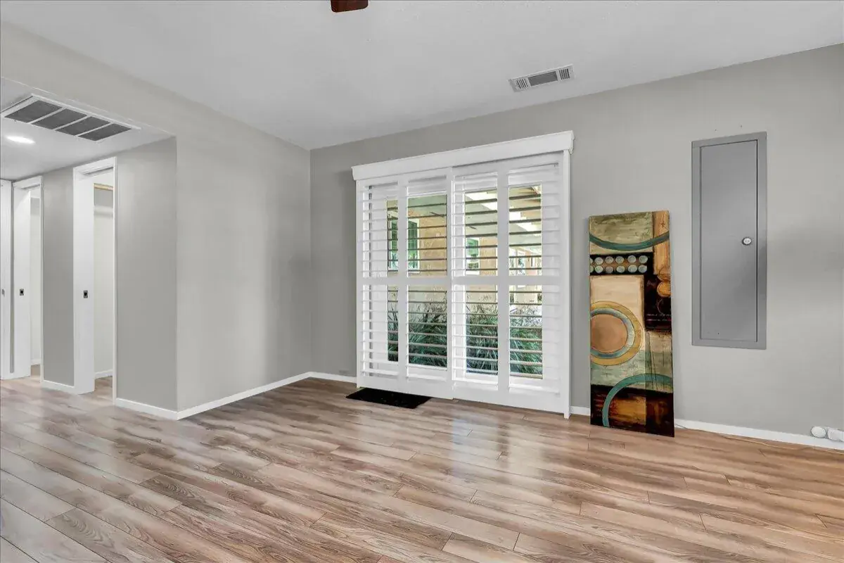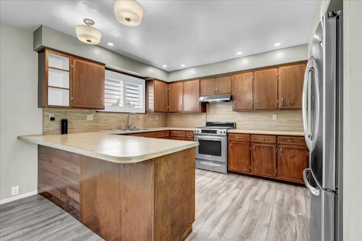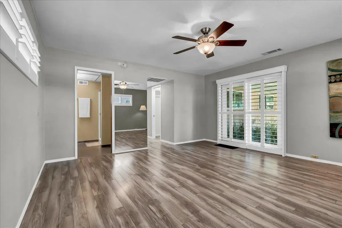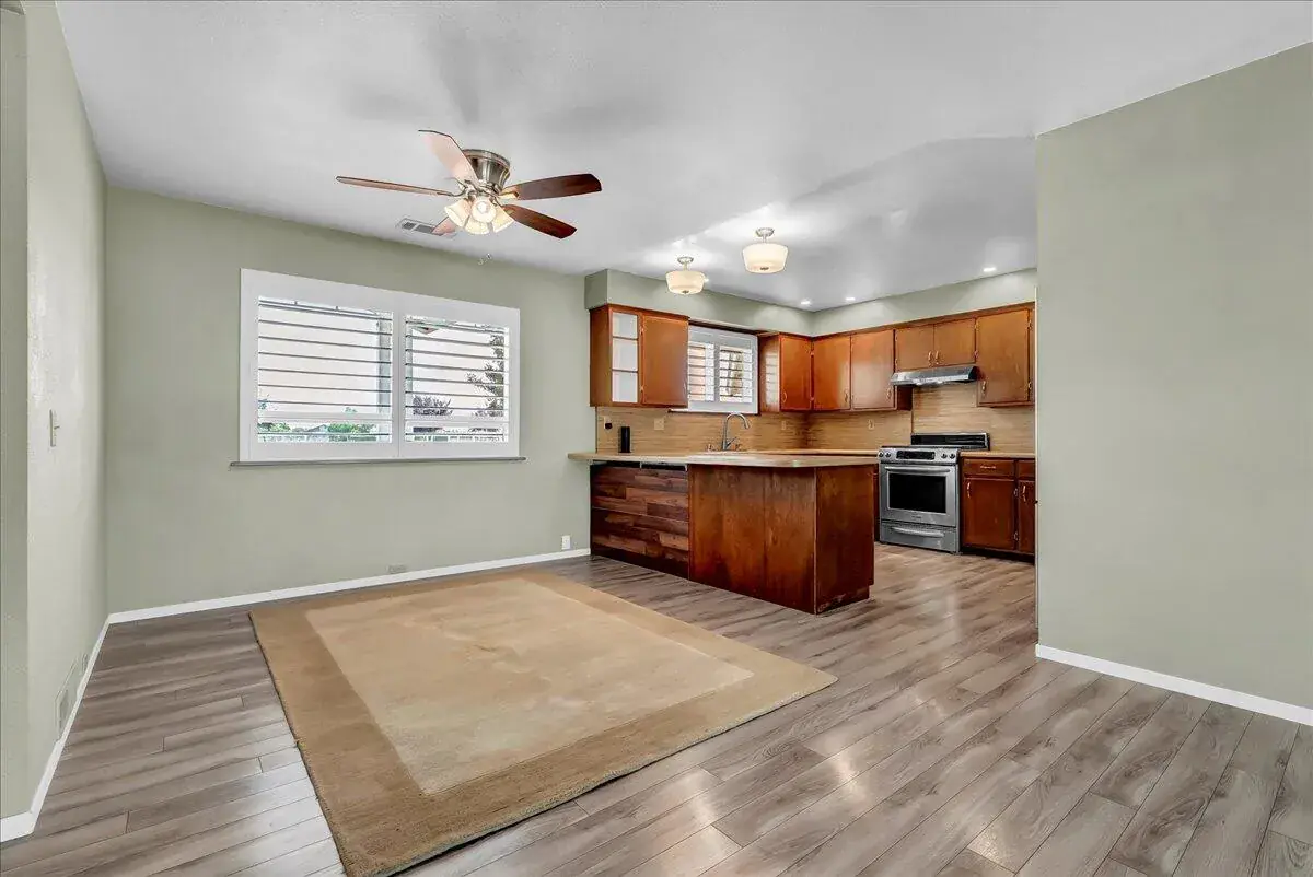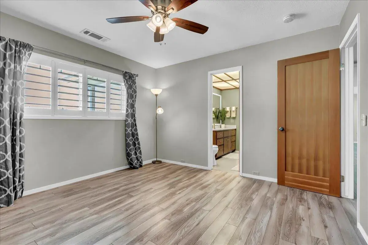Inside, you’ll find an inviting open floor plan with new flooring throughout, a cozy living room with a stone-accent fireplace, and large windows that frame peaceful property views. The spacious kitchen features ample cabinetry, stainless steel appliances, and a breakfast bar that flows seamlessly into the dining area and living space. The private primary suite includes an ensuite bathroom and direct access to the backyard, creating the perfect retreat.