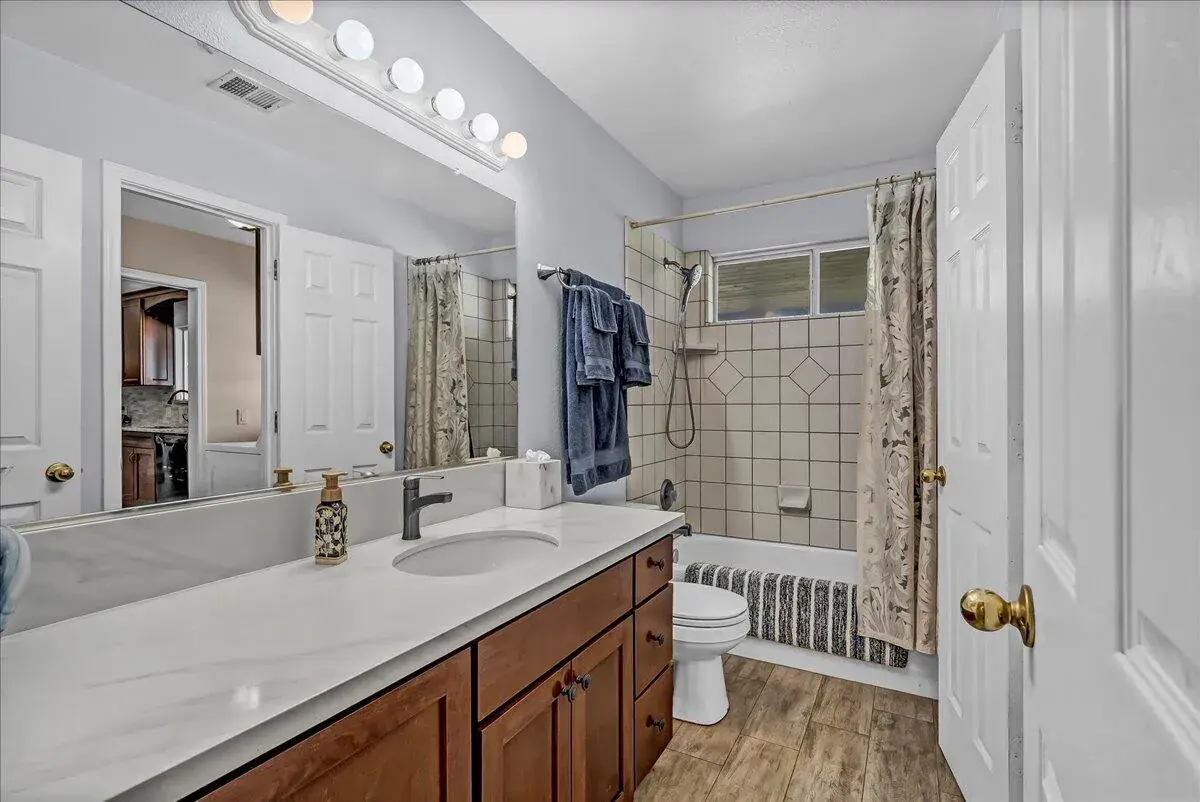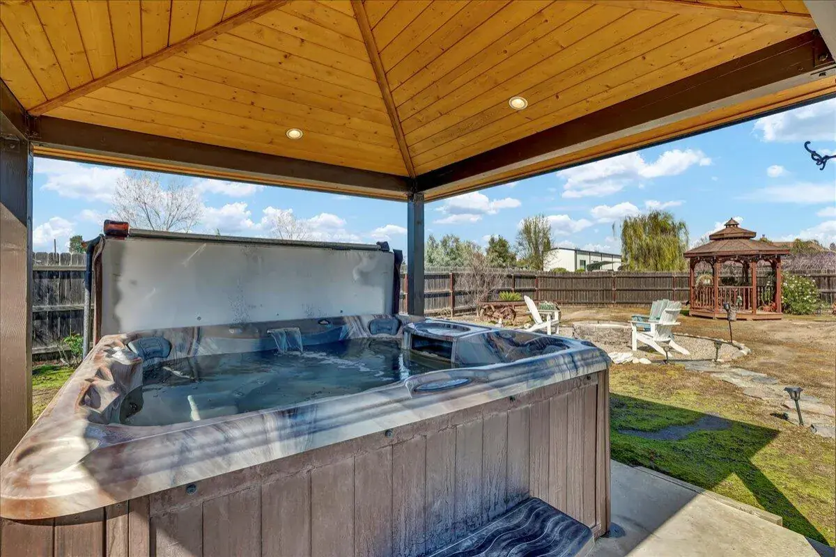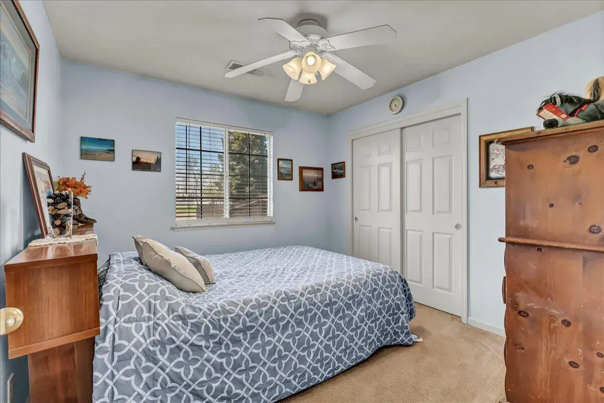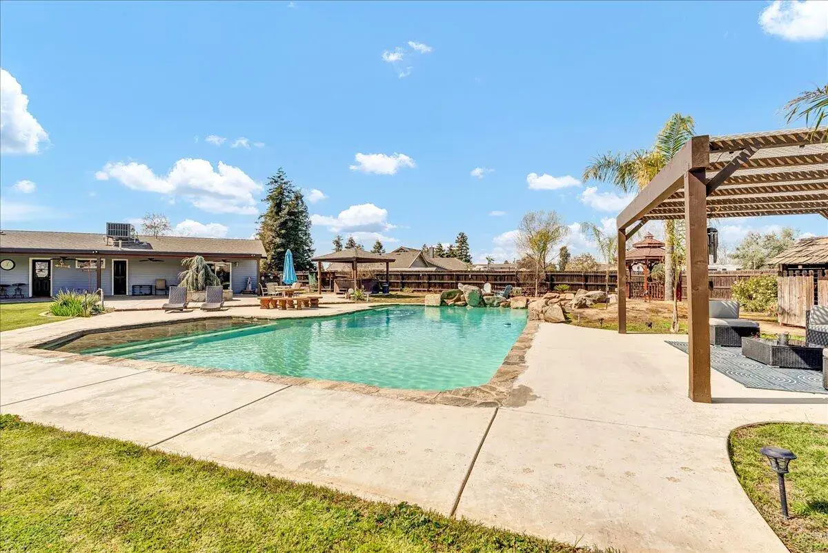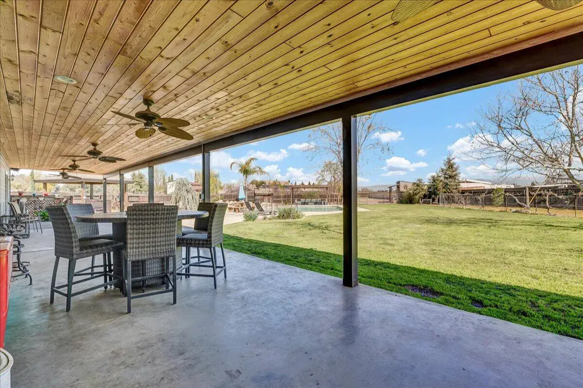 The backyard offers plenty of room for relaxation and outdoor living with a large pool, a tranquil water feature, and a soothing spa—ideal for cooling off and unwinding after a long day. You’ll also find a large 24′ x 32′ shop with two roll-up doors, perfect for storing equipment or working on projects, plus a massive 18′ x 36′ RV cover to keep your motor home protected.