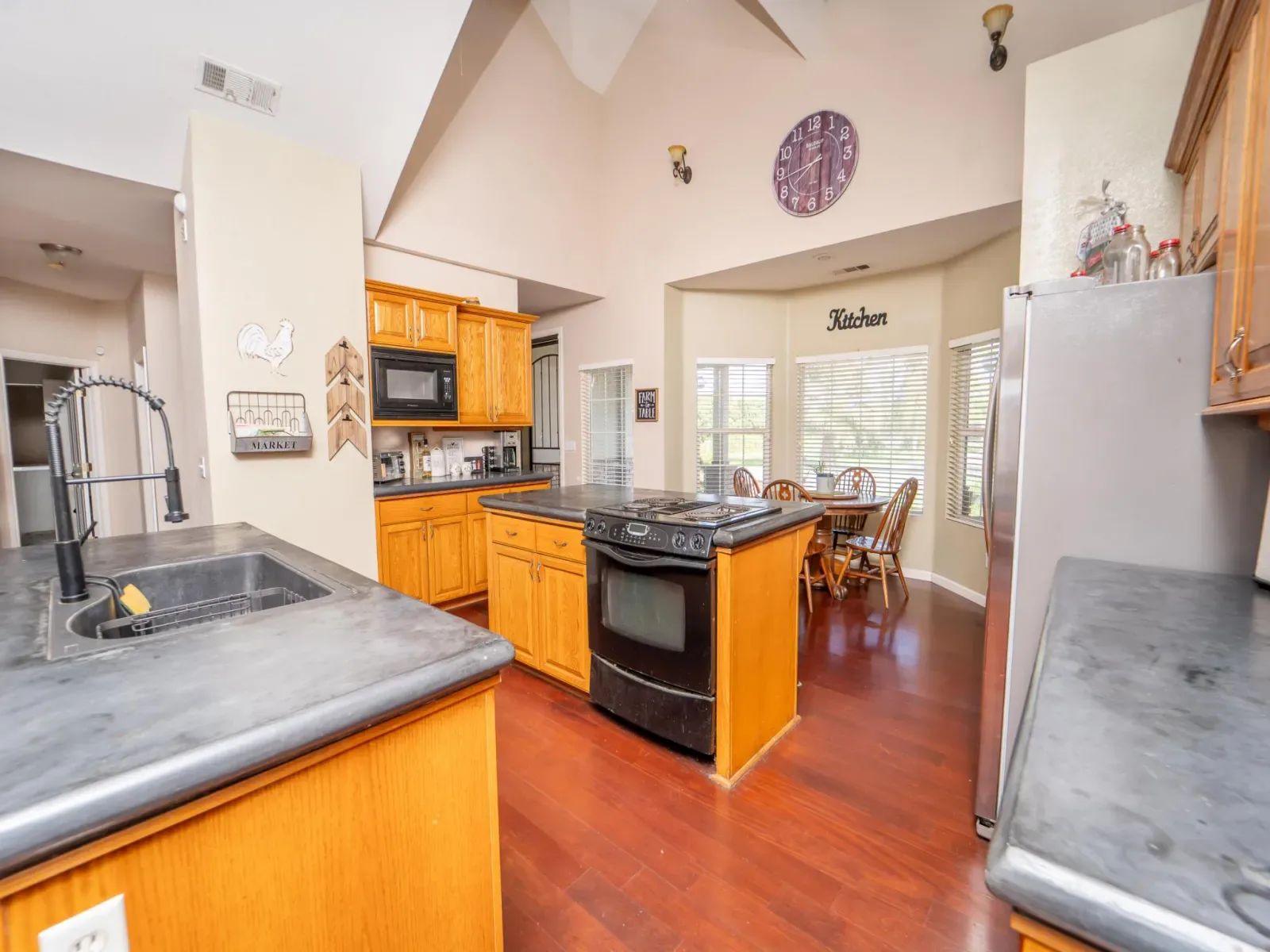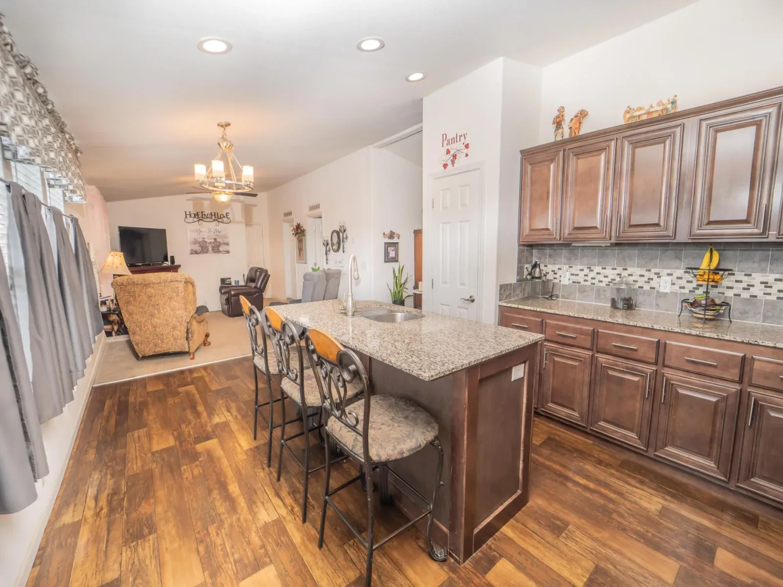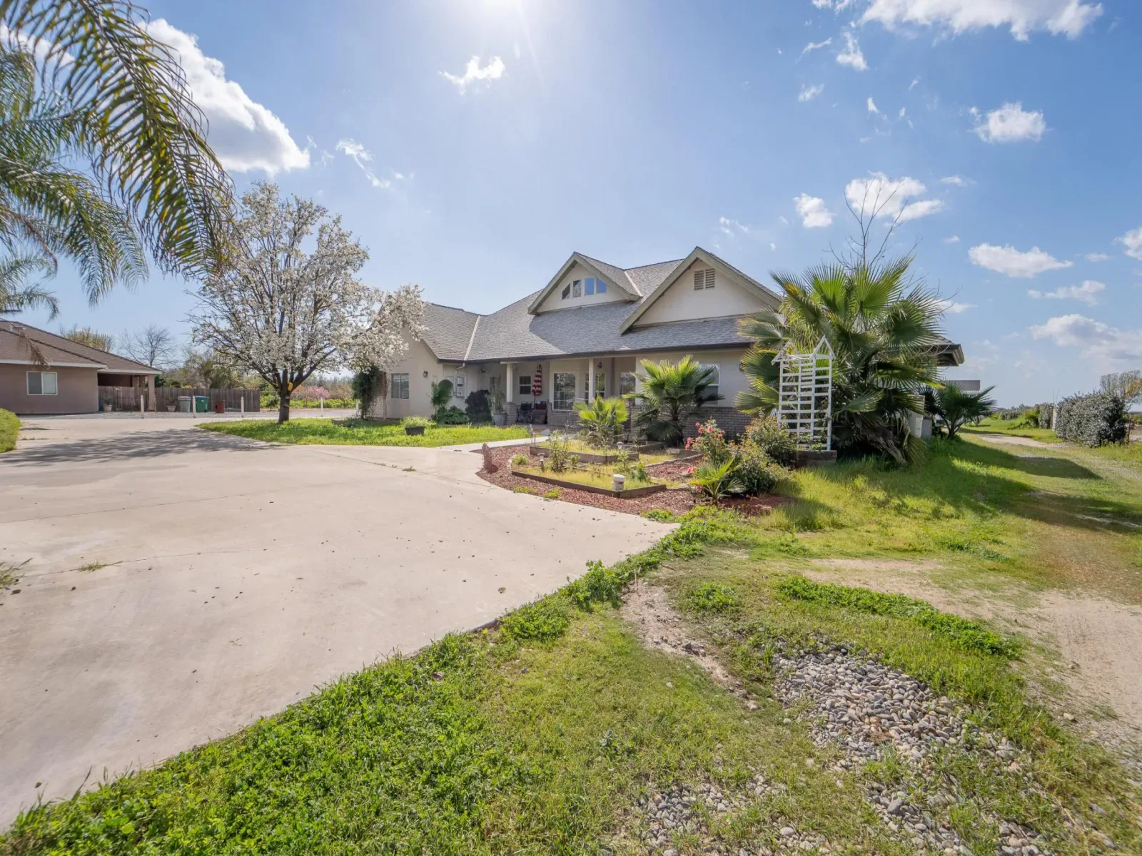 Welcome to this unique country property in Exeter on an acre of land containing 2 homes. The main house is 2206 sq feet and displays an open floor plan. The kitchen is spacious with plenty of counter space, a pantry, breakfast nook and looks out to the living room and formal dining area. The living room has vaulted ceilings, fireplace and French doors that lead to the covered patio. The living area of the home is nicely upgraded with wood flooring while the entry, bathrooms and laundry have slate flooring. The home features a split floor plan with the guest bedrooms on one side, full bathroom and laundry room. The other side of the home features a large master with an en suite containing a split shower tub, dual vanities and a walk-in closet. Also on this side of the house is another 3/4 guest bathroom and an office that could be utilized for a 4th bedroom, playroom or extra living area. The main home does have leased solar and a brand-new water heater, which help with efficiency. In the morning step out front and enjoy the sunrise over the Sierra’s with the beautiful mountain views. Step out in the back yard and you can relax under the covered patio or enjoy your private, fenced yard. Behind the main house is a gorgeous 1450 sq foot mobile home on a permanent foundation built in 2018. The mobile home contains a split floorplan with 3 bedrooms, 2 bathrooms and 2 living room areas. The kitchen in the mobile home is very modern with a barstool area and looks out to one of the living rooms. Enjoy gorgeous views from the front and the back of this mobile home. This property is a must see if you are looking for a property with 2 homes in the country.
