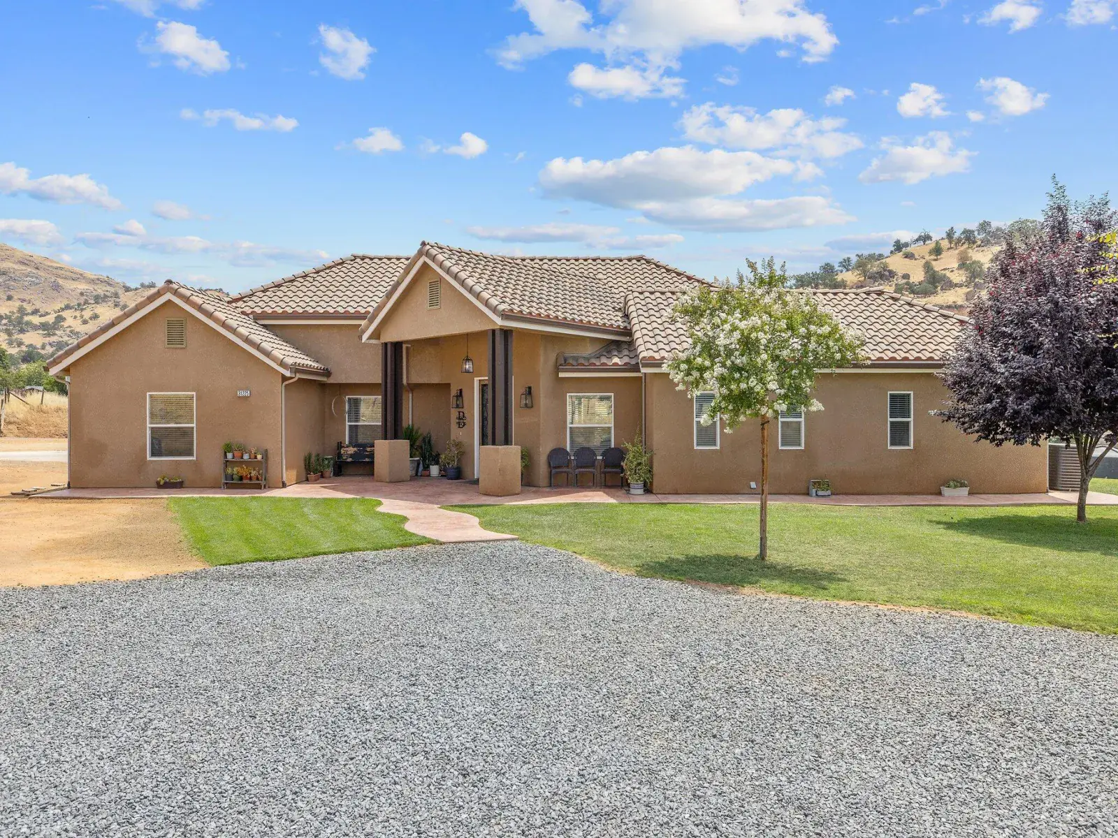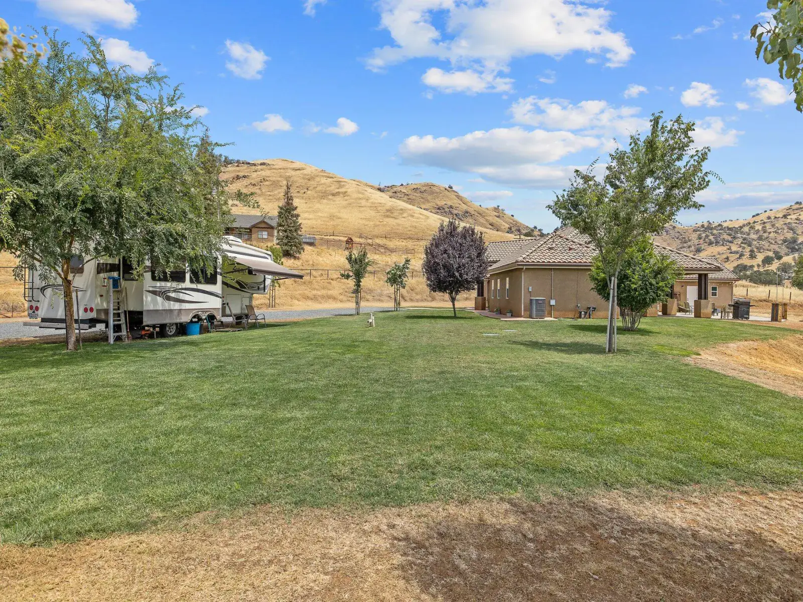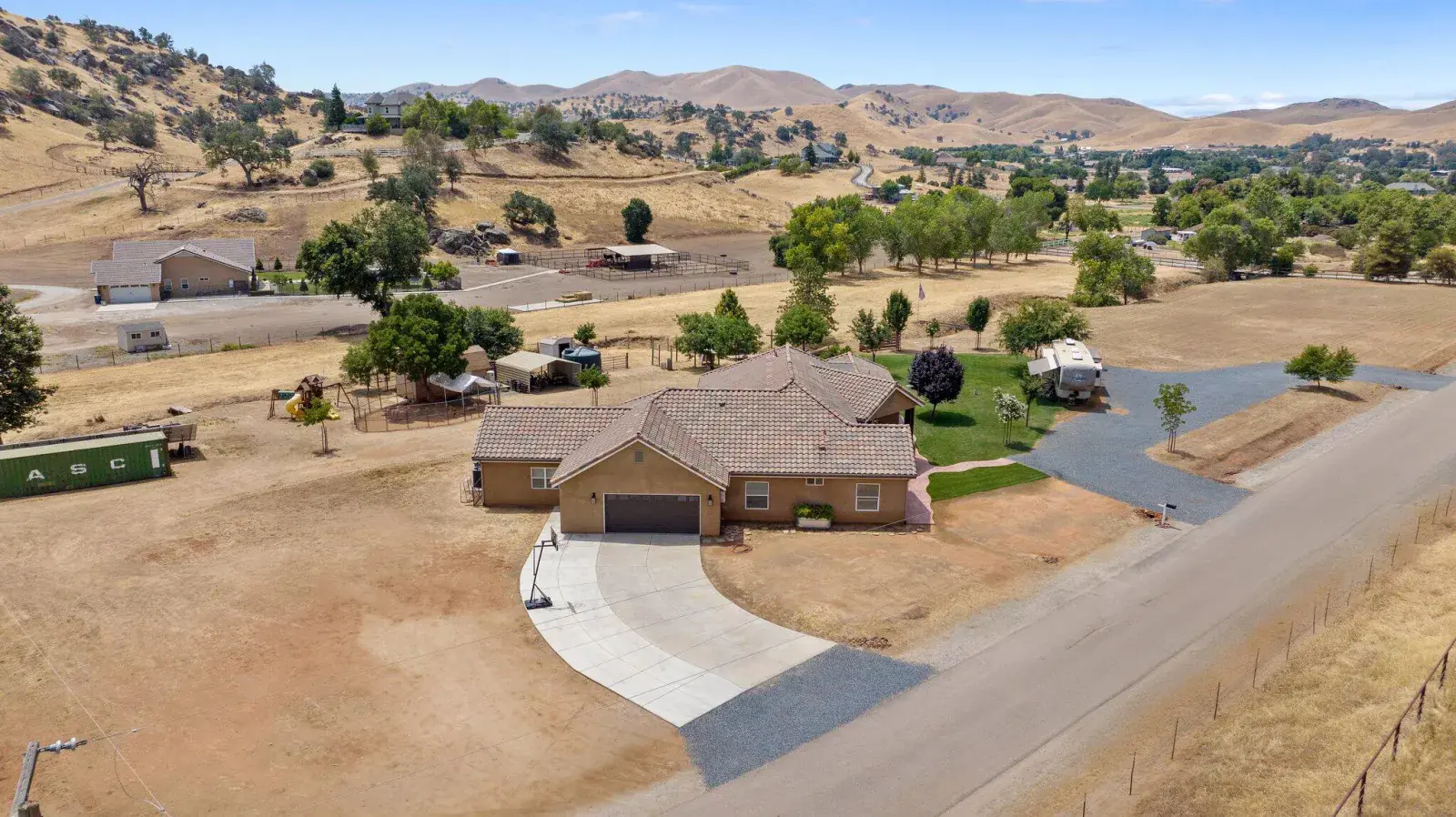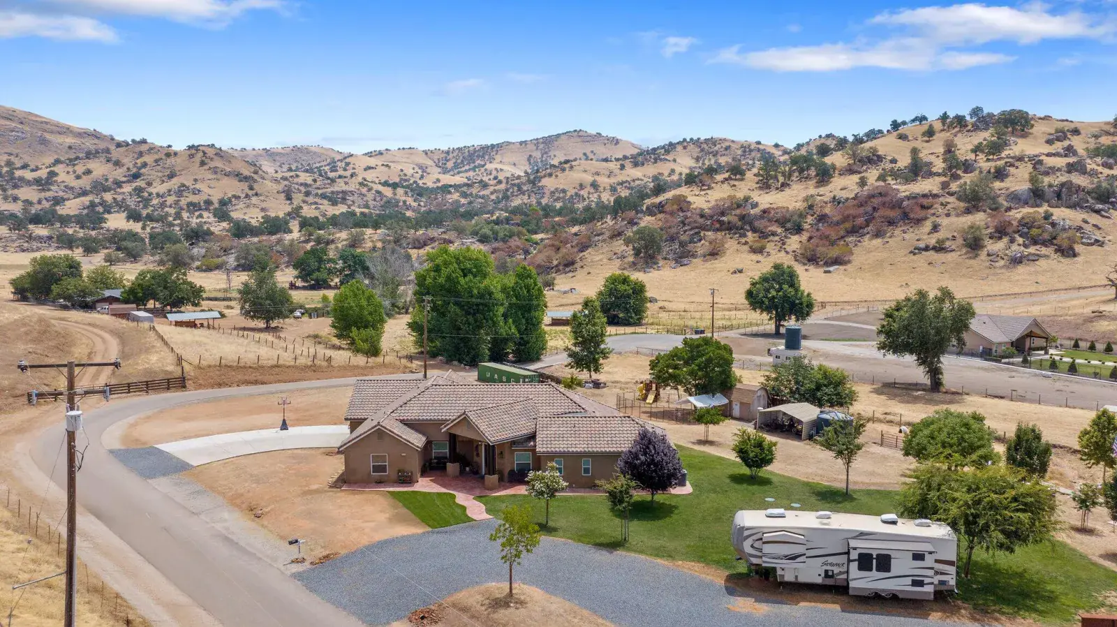 Yearning for the country life? Longing for a space to call your own with plenty of elbow room and endless possibilities? Well, you’ve found it! Nestled in Exeter’s picturesque Mehrten Valley, this stunning 2,524 square-foot country property offers sweeping views of the majestic foothills, creating a serene and breathtaking backdrop. Boasting custom front doors, four spacious bedrooms, three well-appointed bathrooms and new living room carpet, this home is ideally situated on a generous 4.19-acre lot with owned solar, storage shed and circular pull-through driveway. Thoughtfully designed, this split floor plan provides both privacy and comfort, featuring an abundance of storage throughout. The large kitchen is a chef’s delight, complete with center island, breakfast bar, beautiful quartz countertops and elegant alder wood cabinets — the perfect kitchen for creating culinary masterpieces and entertaining. The spacious living room with patio access, invites you to unwind while gazing at the panoramic vistas. Outside, relax on the oversized covered patio where you can enjoy outdoor gatherings and BBQs while soaking in the beauty of the foothills. This property is equipped with two RV hookups, complete with electricity and water, offering convenience for guests or travel enthusiasts. Additionally, the impressive 29-panel ground-mounted solar system enhances energy efficiency and sustainability. Experience the tranquility and beauty of country living, all set against the stunning backdrop of the foothills in Mehrten Valley. This is a rare opportunity to own a piece of paradise! Don’t wait! Call today for your private showing and don’t forget to check out the virtual 3-D tour!