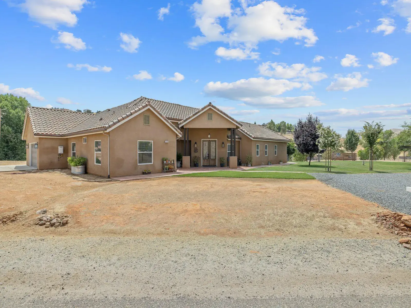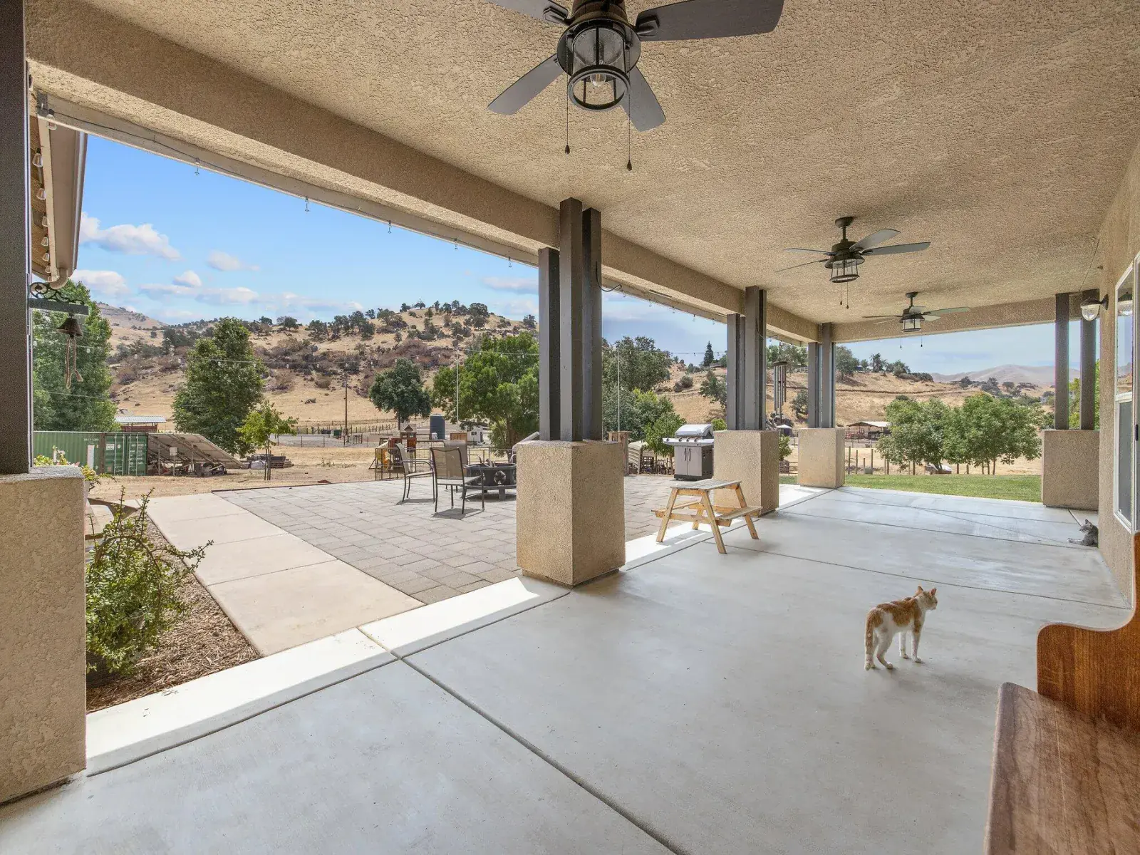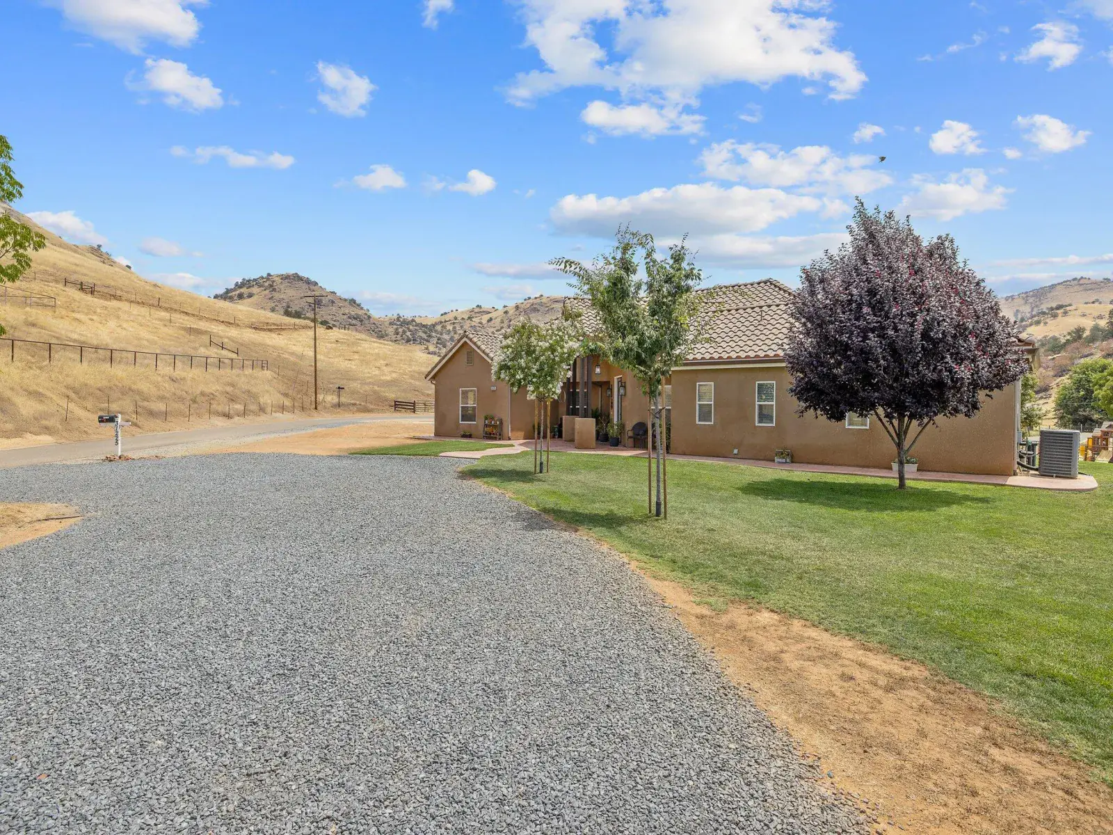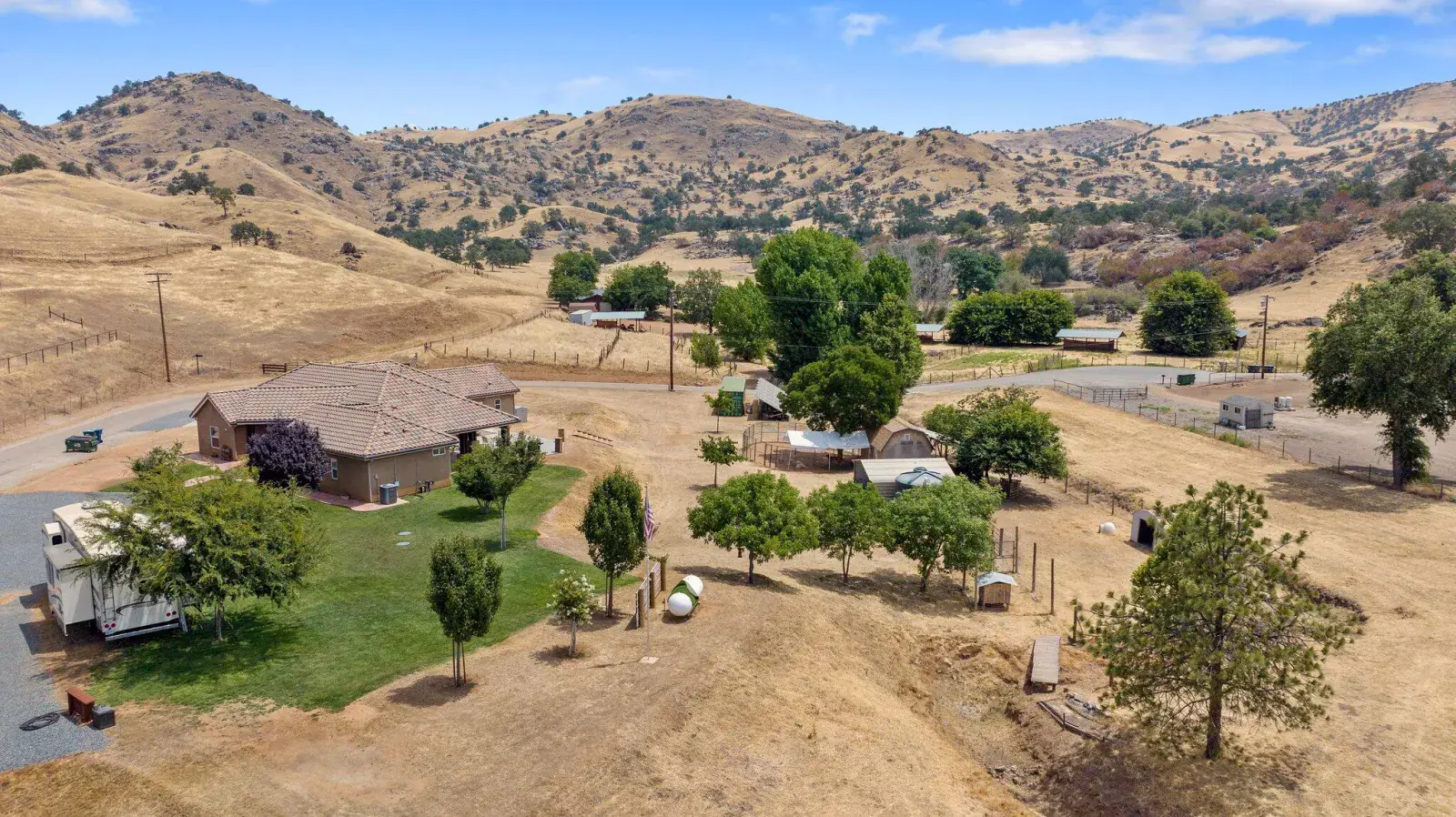 Yearning for the country life? Longing for a space to call your own with plenty of elbow room and endless possibilities? Well, you’ve found it! Nestled in Exeter’s picturesque Mehrten Valley, this stunning 2,524 square-foot country property offers sweeping views of the majestic foothills, creating a serene and breathtaking backdrop. Boasting custom front doors, four spacious bedrooms, three well-appointed bathrooms and new living room carpet, this home is ideally situated on a generous 4.19-acre lot with owned solar, storage shed and circular pull-through driveway. Thoughtfully designed, this split floor plan provides both privacy and comfort, featuring an abundance of storage throughout. The large kitchen is a chef’s delight, complete with center island, breakfast bar, beautiful quartz countertops and elegant alder wood cabinets — the perfect kitchen for creating culinary masterpieces and entertaining. The spacious living room with patio access, invites you to unwind while gazing at the panoramic vistas. Outside, relax on the oversized covered patio where you can enjoy outdoor gatherings and BBQs while soaking in the beauty of the foothills. This property is equipped with two RV hookups, complete with electricity and water, offering convenience for guests or travel enthusiasts. Additionally, the impressive 29-panel ground-mounted solar system enhances energy efficiency and sustainability. Experience the tranquility and beauty of country living, all set against the stunning backdrop of the foothills in Mehrten Valley. This is a rare opportunity to own a piece of paradise! Don’t wait! Call today for your private showing and don’t forget to check out the virtual 3-D tour!