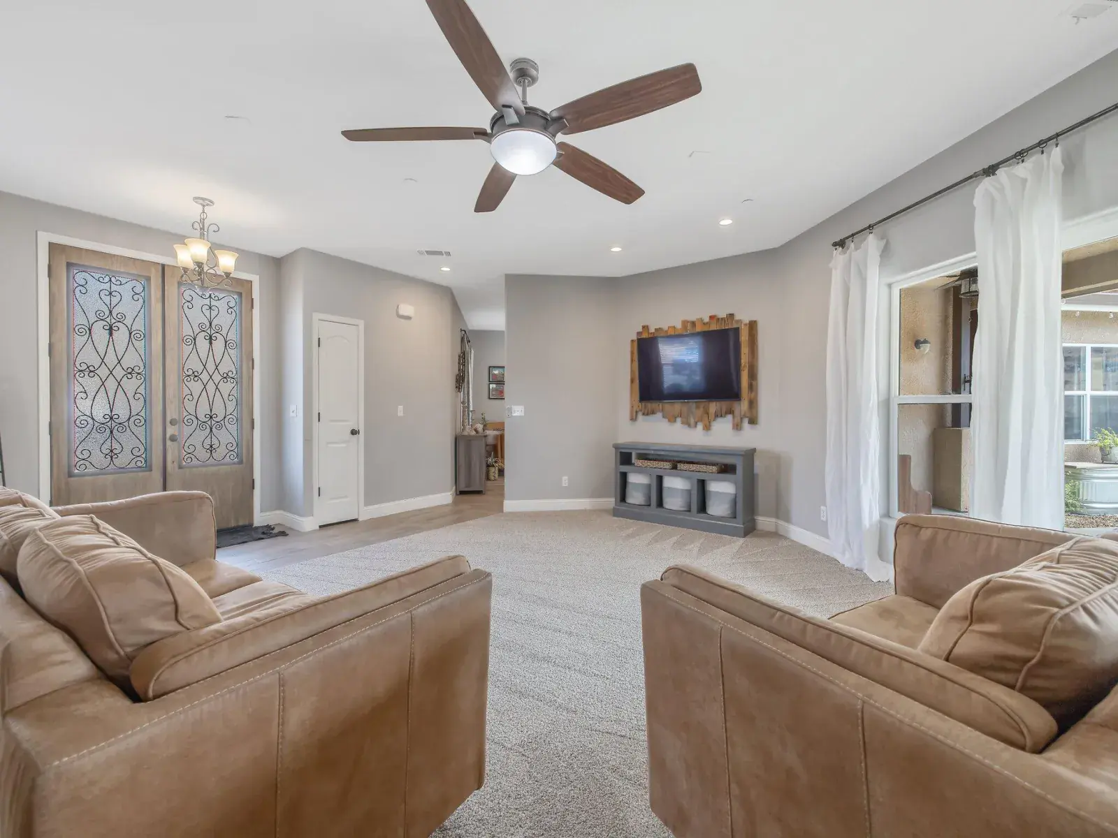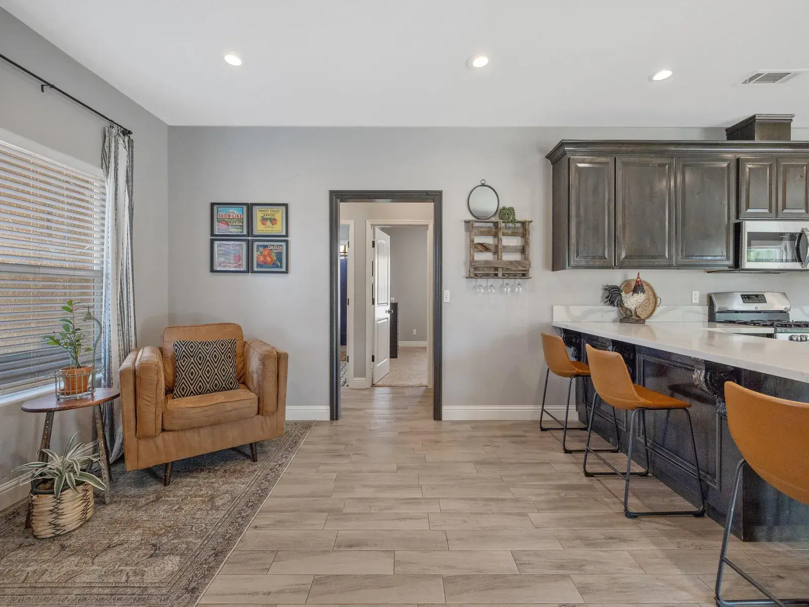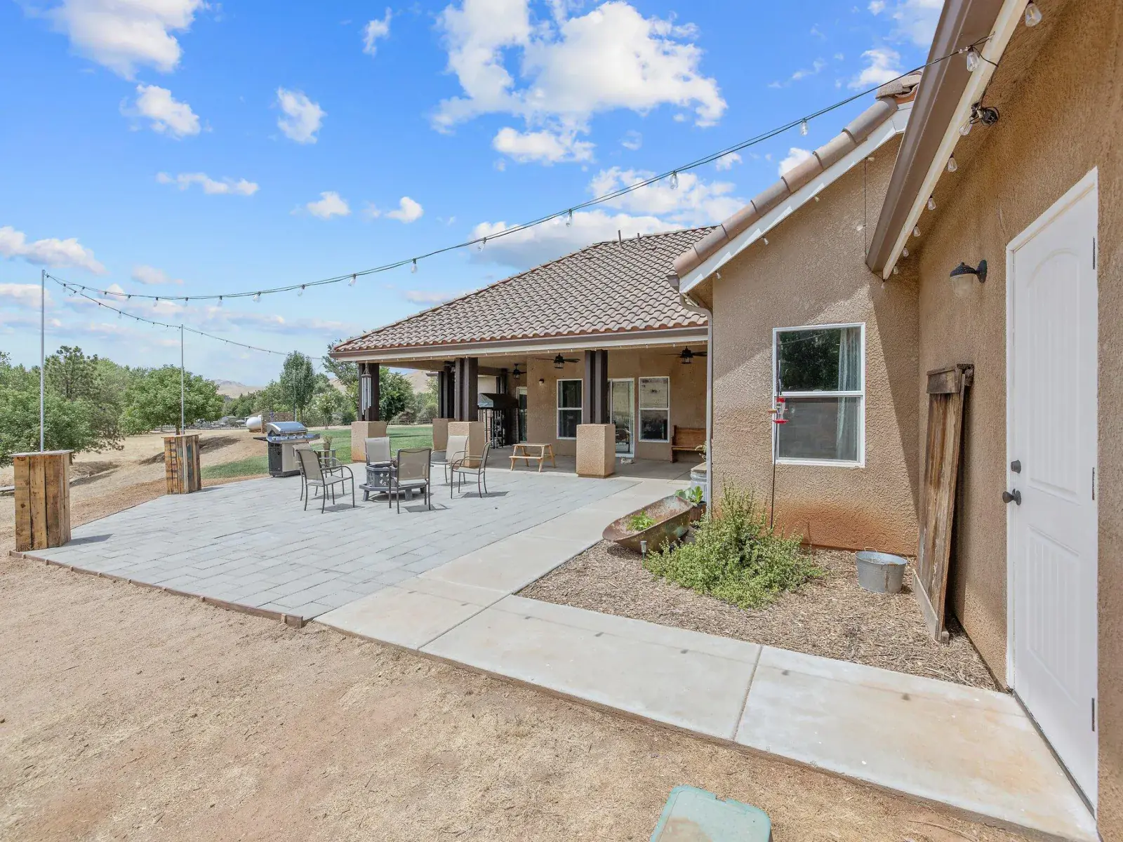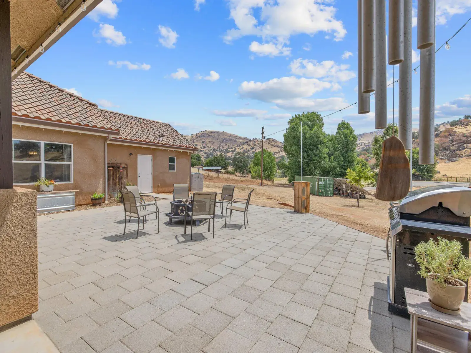 Yearning for the country life? Longing for a space to call your own with plenty of elbow room and endless possibilities? Well, you’ve found it! Nestled in Exeter’s picturesque Mehrten Valley, this stunning 2,524 square-foot country property offers sweeping views of the majestic foothills, creating a serene and breathtaking backdrop. Boasting custom front doors, four spacious bedrooms, three well-appointed bathrooms and new living room carpet, this home is ideally situated on a generous 4.19-acre lot with owned solar, storage shed and circular pull-through driveway. Thoughtfully designed, this split floor plan provides both privacy and comfort, featuring an abundance of storage throughout. The large kitchen is a chef’s delight, complete with center island, breakfast bar, beautiful quartz countertops and elegant alder wood cabinets — the perfect kitchen for creating culinary masterpieces and entertaining. The spacious living room with patio access, invites you to unwind while gazing at the panoramic vistas. Outside, relax on the oversized covered patio where you can enjoy outdoor gatherings and BBQs while soaking in the beauty of the foothills. This property is equipped with two RV hookups, complete with electricity and water, offering convenience for guests or travel enthusiasts. Additionally, the impressive 29-panel ground-mounted solar system enhances energy efficiency and sustainability. Experience the tranquility and beauty of country living, all set against the stunning backdrop of the foothills in Mehrten Valley. This is a rare opportunity to own a piece of paradise! Don’t wait! Call today for your private showing and don’t forget to check out the virtual 3-D tour!