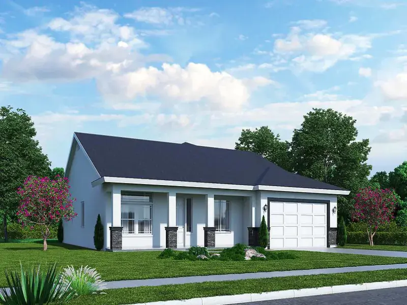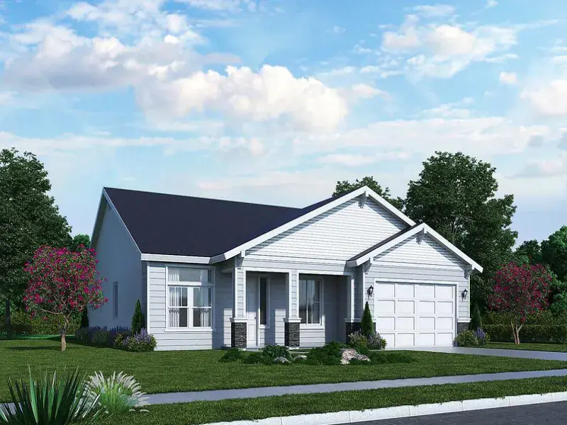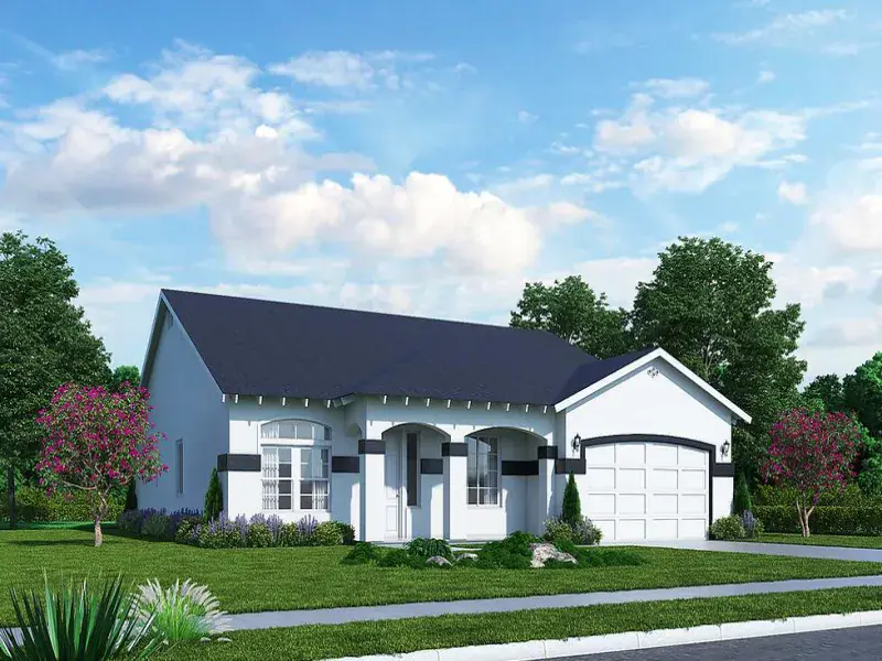 The Valencia 2414sq. ft. plan offers 3 bedrooms +den option or 4-5 bedrooms, with 2-3 bathrooms. On certain lots, this home accommodates a 3-car garage with optional drive through door at the third bay. This home offers an open kitchen with a large island, providing extra dining in the nook, a double-door pantry for surplus storage, a sizable laundry room, a vaulted ceiling living room which gives access to the covered patio. The primary bedroom features an opulent bathroom with an optional barn door for privacy, dual walk-in closets, two sinks, a broad shower and a tub. Off the hallway are two more ample bedrooms, a full bath and a roomy linen closet. Buyers can choose from one of three front elevations to match their style preference. Contact one of our new homes specialists to see how this home can suit your needs. *Individual finishes vary, contact SHI consultant for details.