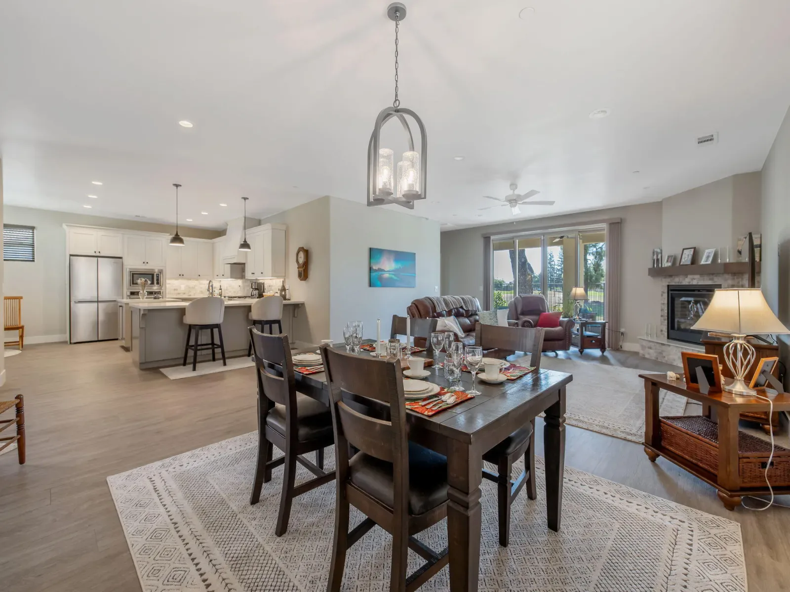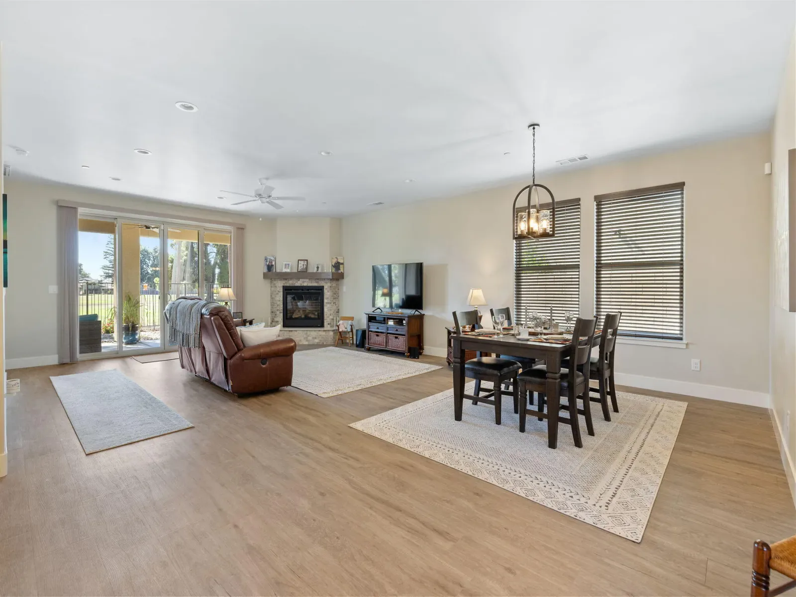 Welcome to a home that simply feels good the moment you step inside. Nestled along the quiet edge of the Exeter Golf Course, this 2023 custom-built retreat offers calm, comfort, and ease. Sunlight fills the open living space each morning, warming the kitchen and great room where loved ones naturally gather. The spacious kitchen with quartz counters and a large island is perfect for slow breakfasts or sharing a glass of wine at day’s end. The private primary suite is a peaceful haven with a spa-like bath and walk-in closet, while a split-wing layout provides two additional bedrooms for guests, grandkids, or a home office. Step onto the covered patio to enjoy golfers passing by, morning birdsong, or soft sunset light. With owned solar, a whole-house fan, and modern construction, this home is beautiful, efficient, and easy to care for. Inside a secure gated community and minutes from downtown Exeter, it offers warmth, privacy, and a truly welcoming feel.