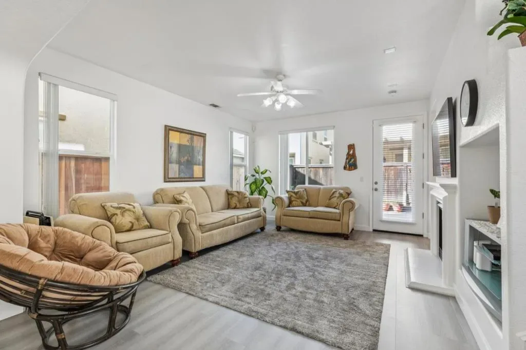 Light-filled and move-in ready, this beautifully maintained two-story home offers an open floor plan and comfortable living near the Fairfield/Vacaville border. Featuring 3 bedrooms, 2.5 bathrooms, and 1,695 sq ft of living space, the thoughtfully designed layout is ideal for both everyday living and entertaining. Step inside to a welcoming entry with high ceilings and elegant arched architectural details. The spacious living and dining areas showcase stylish new hardwood flooring and abundant natural light. The kitchen opens to a charming breakfast nook framed by beautiful bay windows, perfect for morning coffee or casual dining. Upstairs features plush new carpeting throughout. The generous primary suite offers an ensuite bathroom and ample closet space, while two additional bedrooms offer flexibility for guests, a home office, or a growing household. Additional highlights include a covered front porch, low-maintenance yard, and attached two-car garage. No HOA! Ideally located with convenient access to I-80 and I-680, and just minutes from Travis Air Force Base, Costco, Kaiser, parks, shopping, and dining.