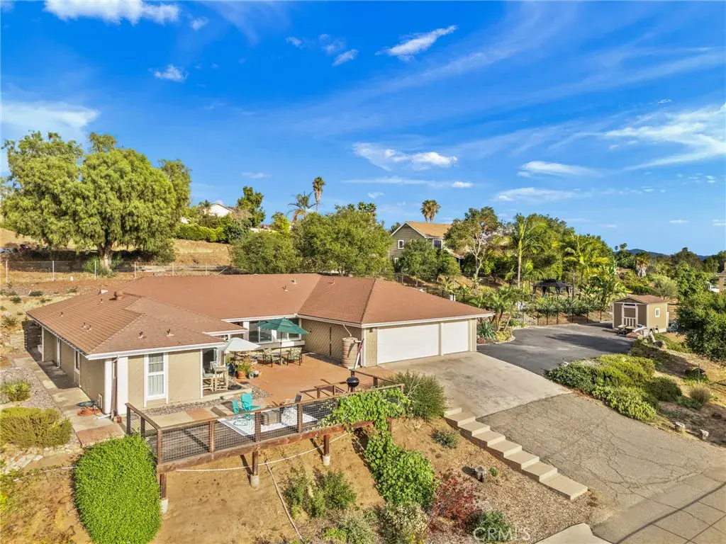 Outdoor amenities include a secluded covered lanai, multiple patios/decks, pool and spa, steel gazebo and steel pool fencing. The gardens were redesigned in 2024 with primarily California native plants and updated sprinkler systems, creating a low-maintenance, water-conscious landscape with added fire resistance. The in-ground pool has a new vacuum and well maintained pump system. Not heated. There is ample paved parking with turnaround driveway, 3-car garage with two openers, large 10×12’ Tuff Shed and a greenhouse. The property is mostly fenced with chain-link and 2 gates. Two large, flat unpaved pads (24×48’+) provide flexibility for your future projects, gardens, an orchard, chickens, or workshop. No solar currently installed; ample space available for future systems. Convenient location minutes to Fallbrook and Bonsall amenities, county parks, golf courses, Fallbrook Airpark. Near La Paloma Elementary School and Fallbrook High School. Approximately one hour to San Diego International Airport.