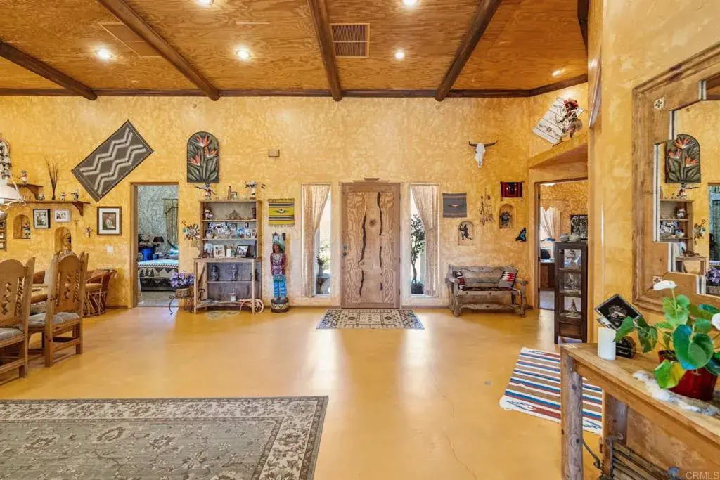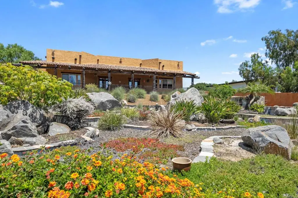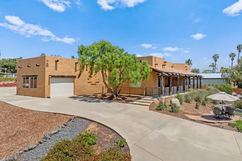 Welcome to 129 Emilia Ln, where timeless Southwestern style meets modern comfort in this unforgettable custom-built compound just 5 minutes from the heart of downtown Fallbrook. If you’re searching for space, character, craftsmanship, privacy, and versatility, this one-of-a-kind estate on 2.14 acres is your dream come true. Step inside and be wowed by 3,463 sq. ft. of open-concept living space, soaring 14’ wood beam ceilings, warm textured walls, hand-troweled finishes, and custom color palettes in every room. The kitchen is a showstopper, centered around a handcrafted natural wood island and finished with artisan-toned counters, and high-end appliances. Whether you’re entertaining in the huge game room, working in the private office, or relaxing in one of the 3 spacious bedrooms and 3 full baths, this home radiates comfort and quality. Thoughtful design includes 3’ wide doors for accessibility, double-pane vinyl windows, and two 4-ton HVAC units for year-round efficiency. The oversized custom teak doors are just one of the many distinctive details that make this home stand out. Car enthusiasts and hobbyists, get ready! The attached 3-car garage features FOUR 12’ x 8’ electric doors including a pass-through setup for easy access. But that’s just the beginning—there’s also a permitted 2,500 sq. ft. detached workshop with 12’ high commercial doors, 16′ ceilings, that can hold up to 10 additional vehicles or a motorhome, bringing your total indoor parking capacity to 13 cars. This massive shop is also primed for transformation into an 800 sq. ft. guest house with a 2-car garage if desired. Plus, RV hookups are already in place! Step outside and experience your private oasis: a 700 sq. ft. water feature with boulders, lush exotic landscaping, ambient lighting, and plenty of usable land for horses, corrals, or anything else your vision includes. The entire property is enclosed by a 6′ block wall with three 20’ electric gates, offering both privacy and security. This isn’t just a home—it’s a fully equipped lifestyle compound with room to grow, play, and unwind in true Fallbrook fashion.