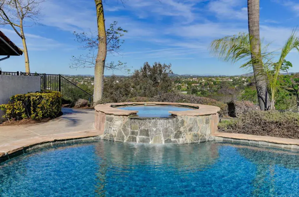 Beautiful custom single-story home, perched on over an acre with mountain views, fully fenced with a gated entrance in Fallbrook’s desirable Olive Hill community. Built in 2000, this thoughtfully positioned home captures sunrise-to-sunset vistas, every room is framed by natural beauty, enhanced by abundant windows, plantation shutters, and soaring ceilings. Outside, the sparkling pool and raised spa enjoy a secluded placement with expansive views creating a tranquil backdrop for relaxation or entertaining. The property is fully fenced and includes a separate fenced area, offering the best of country living without sacrificing comfort or convenience. At the heart of the home is the gourmet kitchen, featuring a walk-in pantry, granite countertops, stainless steel appliances, a generous center island, and a large seating bar. A charming breakfast area overlooks the views and opens directly to the patio, perfect for morning coffee or casual poolside dining. The kitchen opens into the family room with fireplace and extends into the formal living and dining spaces, creating an open layout for everyday living and entertaining. The primary suite offers a peaceful escape with its spa-inspired ensuite bathroom, walk-in closet, dual vanities, jetted tub, and separate shower. A private sliding door leads directly to the pool and spa terrace, offering the perfect setting for quiet evenings or sunrise dips. Two additional bedrooms are located nearby, creating a comfortable layout for family or guests and a fourth bedroom, privately tucked away at the other end of the house, features its own full bath, providing the ideal setup for visiting guests, in-laws, or a separate space for work or hobbies. A spacious laundry room with ample cabinetry, counter space, and a utility sink adds everyday convenience. All of this is nestled in Olive Hill, one of Fallbrook’s most beloved communities, known for its natural landscapes, wide-open spaces, and sense of tranquility. Located minutes from Fallbrook village, hiking trails, nature preserves, schools, wineries, and horse trails, this home blends privacy, beauty, and convenience into a lifestyle that feels like a retreat, yet remains close to everything.
