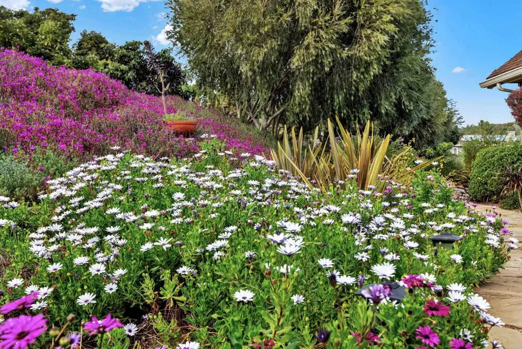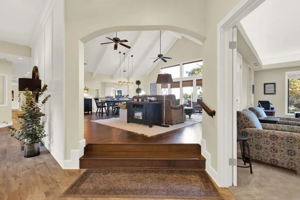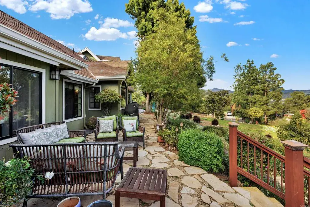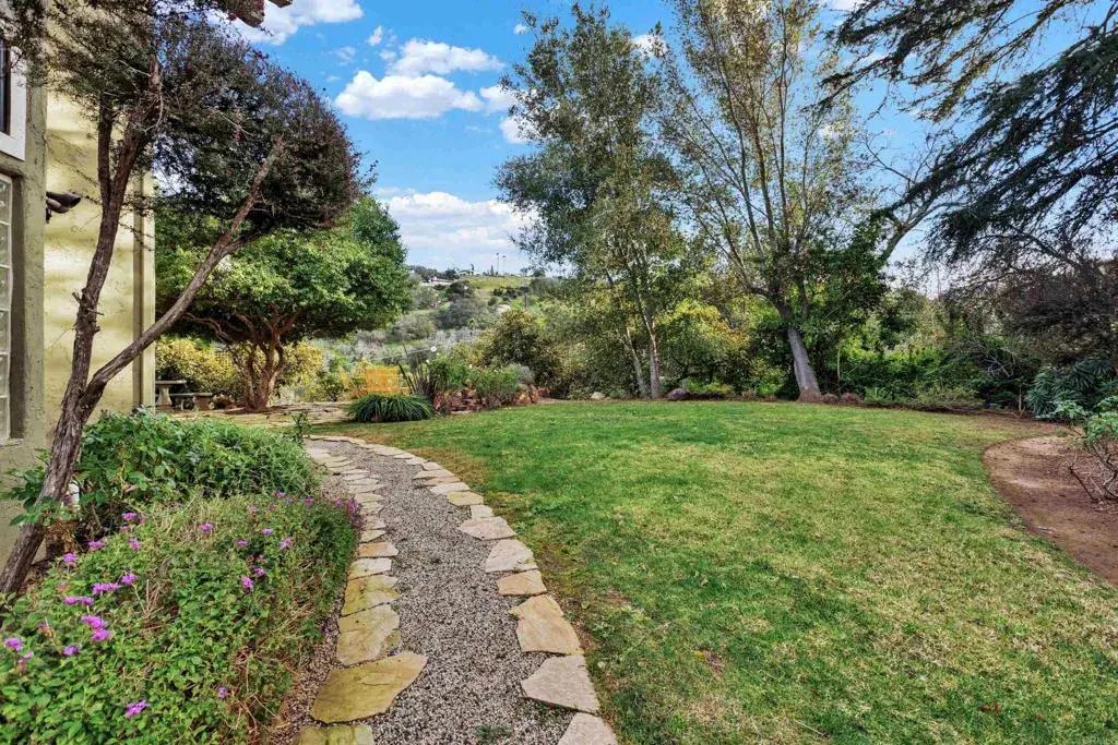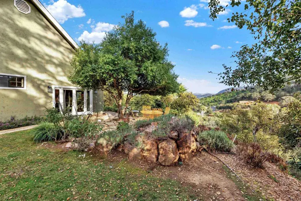 See this gorgeous, storybook home nestled in the hills of Fallbrook. Situated on 1.98 acres of picturesque landscape, this single level boasts 4 bedrooms, 3 baths & a spacious private loft (=5) w/ a bathroom. Spectacular cathedral ceilings welcome you into the living/dining area, while showcasing breathtaking views of rolling hills & mountains. Gorgeous porcelain tile flooring throughout, hardwood flooring in the great room. The primary suite includes walk-in shower, jacuzzi tub, & two custom built, walk-in closets. A gorgeous/recently remodeled kitchen & breakfast room overlook the beautiful flower gardens & valley view. Meander through the lovely grounds which include a wildflower meadow, tri-level deck & various seating areas. Over a dozen avocado trees produce delicious varieties including Haas, to enjoy for about 8 months. An overall serene, natural, park-like setting surrounds this lovely home. Generous lot w/ample space that may allow for a pool and/or ADU, Buyer to verify. Since its purchase in 2020, numerous upgrades (see supplement in docs section) have only enhanced the Daisy Dream House’s beauty and functionality. An oversized 2-car garage provides ample space for vehicles plus hobbies/projects, space for workbench, or exercise equipment. This is a truly magical retreat for those seeking tranquility & luxury amidst nature & splendor.