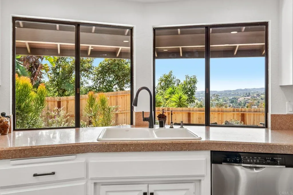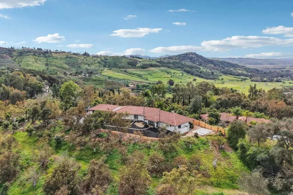 Back on market due to no fault of the property – Set in the heart of Fallbrook’s coveted Gird Valley wine corridor, just minutes from the renowned Monserate Winery, this exceptional property captures the essence of Southern California wine-country living. Positioned behind a gated entry and surrounded by a productive avocado grove with over 100 avocado trees, the home enjoys sweeping views of the Sleeping Indian and surrounding mountains, offering a rare blend of privacy, scenery, and proximity to one of the area’s most celebrated destinations. The residence has been freshly painted inside and out and features warm wood flooring, vaulted wood-beam ceilings, and abundant natural light. Expansive picture windows frame the landscape throughout, creating a tranquil, elevated atmosphere. The kitchen is a true highlight, where everyday moments feel special as picture windows over the sink capture uninterrupted views of the mountains and iconic Sleeping Indian. Generous counter space and ample cabinetry open seamlessly to the main living areas, making it ideal for entertaining or relaxed gatherings. The floor plan is thoughtfully designed for privacy, with the primary suite located on its own side of the home and two additional bedrooms situated in a separate wing—ideal for guests, family, or work-from-home flexibility. Outdoor living is equally compelling, featuring a brand-new deck perfect for morning coffee, vineyard sunsets, or evening gatherings under the stars. The backyard is enhanced by new cedar fencing, adding privacy and charm, and the seller has plans for a future pool that can be conveyed to the new owner, offering the opportunity to create a true resort-style retreat. The avocado grove adds both lifestyle appeal and long-term potential, whether enjoyed as a personal passion or agricultural investment. The garage has been fully drywalled and includes an additional half bath, making it ideal for a workshop, creative space, or convenient use after tending the grove. The seller recently purchased the property and completed several improvements; however, a change in circumstances has prompted an out-of-state move—presenting a rare opportunity to own a move-in-ready home in one of Fallbrook’s most desirable wine-country locations.