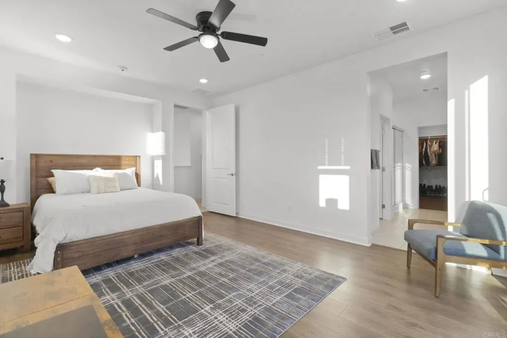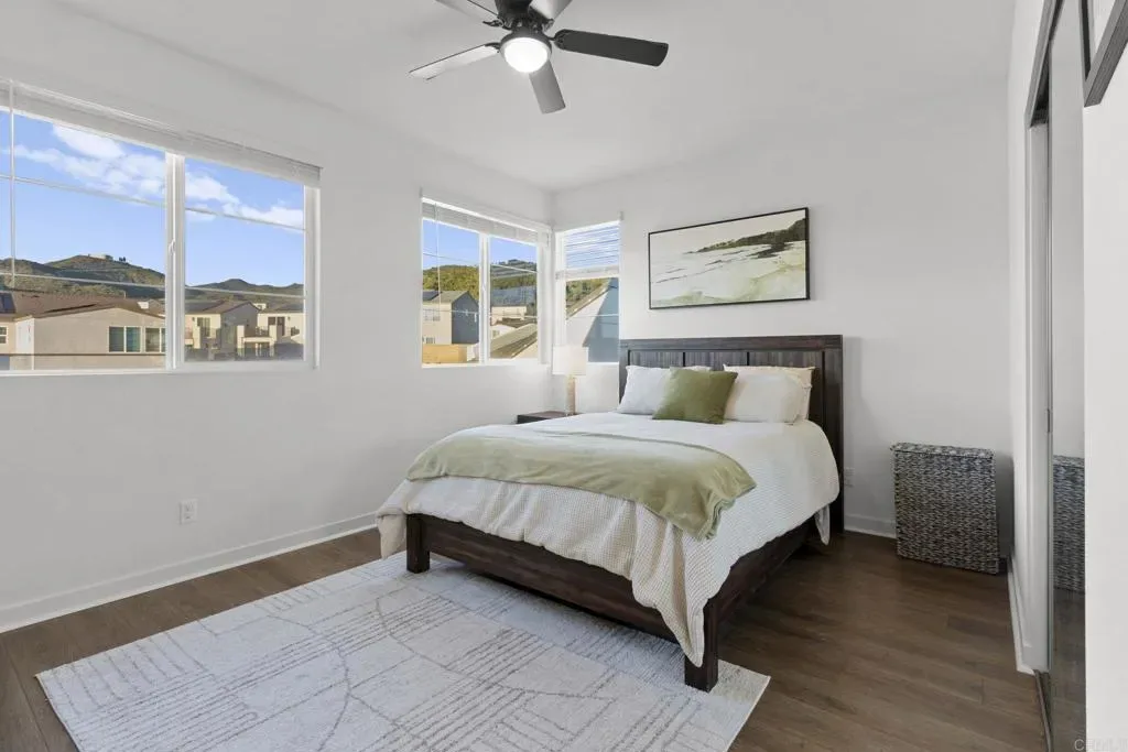 USDA LOAN ELIGIBLE. QUALIFIED BUYERS MAY QUALIFY FOR USDA NO MONEY DOWN/LOW MONEY DOWN LOAN. Thoughtfully positioned to capture sweeping mountain vistas and breathtaking sunset views, this nearly new 2024-built residence offers elevated countryside living in the desirable Citro Community of Fallbrook. This beautifully designed 4-bedroom, 3-bath home blends modern comfort, energy efficiency, and smart technology with serene rolling hill surroundings. The versatile floor plan is ideal for today’s lifestyle, featuring a full bedroom and bathroom on the main level—perfect for guests, multigenerational living, or a private home office. The main living area showcases a bright open-concept layout where the kitchen and living space flow seamlessly together, creating a welcoming environment for everyday living and entertaining. The upgraded kitchen stands out with granite countertops and backsplash, crisp white cabinetry, modern hardware, and a spacious walk-in pantry that provides exceptional storage. Numerous builder upgrades enhance the home throughout, including upgraded luxury vinyl plank flooring, tiled bathrooms, ceiling fans, and a tankless water heater. The home also features owned solar panels, central air conditioning, and Smart Home technology allowing you to conveniently control temperature and lighting from your phone. Upstairs, you’ll find the remaining bedrooms and bathrooms along with a full laundry room equipped with side-by-side full-size washer and dryer. Outdoor living is just as inviting, with peaceful countryside views from the expansive upstairs balcony and a covered patio below overlooking the landscaped yard with lush grassy space—perfect for relaxing, play, or entertaining. Residents of the Citro community enjoy resort-style amenities including a community center, pool, dog park, community garden, and approximately 14 miles of scenic hiking and biking trails. Nearby Willow Grove Park offers a convenient playground, while Mount Monserrate provides popular hiking trails with rocky terrain and panoramic summit views. Located within the highly regarded Bonsall Unified School District and just minutes from charming downtown Fallbrook, residents enjoy easy access to boutique shops, local wineries, equestrian facilities, and scenic outdoor recreation. Combining contemporary finishes, smart efficiency, and a prime view location in one of North County’s most sought-after newer communities, this move-in ready home delivers the perfect blend of comfort, style, and lifestyle.