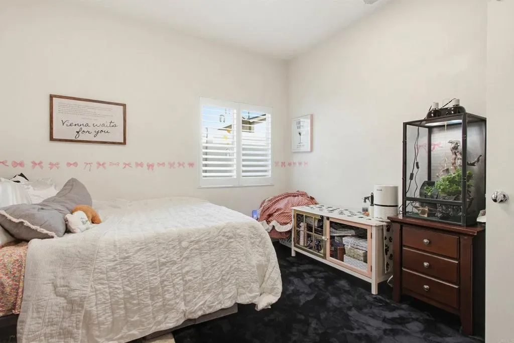 Enjoy the finest of Fallbrook living in this immaculate 3 bed, 3 bath luxury Horse Creek Ridge home with fully paid solar. Past the long spacious driveway and lush landscaping of the front yard, awaits your new home with a bright open concept kitchen, upgraded stainless-steel appliances and InstaHot faucet. The 4-seat bar connects diners with the family chef. Generous pantry helps keep large unwanted items off the granite countertops. The ground floor primary suite ensures you will enjoy the space without needing to walk the stairs. Primary bedroom enjoys a picture window view of the serenely private backyard and includes a large soaking tub, spacious step-in shower, and a massive walk-in closet. There is also a first-floor secondary bedroom next to a 3-piece bath. Upstairs you find the third bedroom next to a 3-piece bath and an expansive loft. Your private backyard features Italian stone patio and automated awning for shade on command complete with lush, low-maintenance landscaping provides a calming influence at the end of a long day as you take in the gorgeous Fallbrook sunset. Home also includes luxury vinyl plank flooring, high end window treatments (plantation shutters, remote control motorized roller blinds), and tankless water heater. High ceilings in the garage provide outstanding storage opportunities. Horse Creek Ridge is a community of recently built homes and offers a commuter-friendly location just minutes to both the 15 and 76; and includes amenities such as the Harvest House community center, pools, barbecues, playgrounds, sports complex, and direct access to the Monserate Mountain hiking trail network. You’re new life is just a short drive to a small town where you’ll see faces you know as you shop local grocery stores, coffee shops, restaurants, art studios, farmer’s market or attend many of the town’s fun events such as the Avocado Festival, Vintage Car Show, Farmer’s Market, Bob Burton Center for the Arts, Playhouse Theater, Art Center Shows, Library events, Veteran’s Day, 4th of July and Christmas parades.