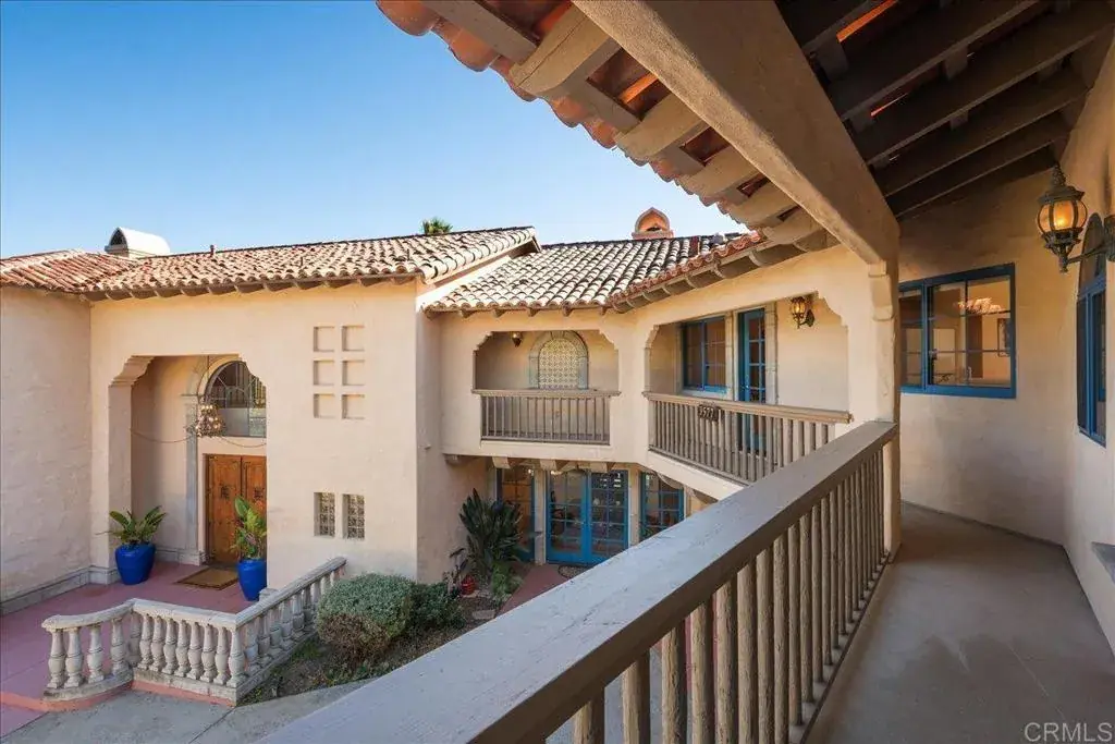 A TIMELESS SPANISH REVIVAL HOME – Set on 3.43 private acres with beautiful eastern views, this 5,388 sq. ft. Spanish Revival estate (built in 1991) exudes timeless architectural character and exceptional craftsmanship. Featuring 5 bedrooms and 6.5 baths, the residence showcases classic period details including 6 fireplaces, 4 balconies, and 4 inviting patios—each space thoughtfully designed for both everyday living and grand-scale entertaining. A grand welcome begins at the 8-foot solid oak double entry doors, opening to a large, spacious living room with soaring 21-foot ceilings and dual sets of French doors leading to the expansive outdoor terrace. A striking 20-foot brick fireplace creates a dramatic outdoor focal point beside the 36′ x 14′ in-ground pool and built-in spa—an entertainer’s dream. The kitchen offers a rare and charming touch with its own fireplace, while one of the exterior patios features another, perfect for al fresco evenings. Throughout the home, the rich authenticity of Saltillo tile flooring and Talavera-style tilework brings warmth and artistry—most notably showcased on the solid wood staircase, where Talavera risers pair beautifully with a wrought iron chandelier overhead. A second wrought iron chandelier graces the outdoor entryway, setting the tone for the home’s classic Spanish character. Each bathroom is finished in a unique Talavera motif, giving every suite its own personality and charm. Completing the home’s exceptional functionality are two spiral staircases, one providing private exterior access to a guest suite with full kitchen, perfect for extended family or visiting guests. This is a rare opportunity to own an architecturally significant Spanish Revival estate blending old-world craftsmanship, modern comfort, and resort-quality amenities—all on an expansive, beautiful parcel of land.