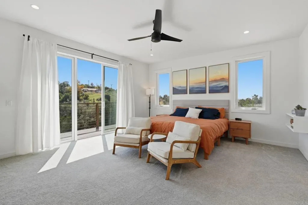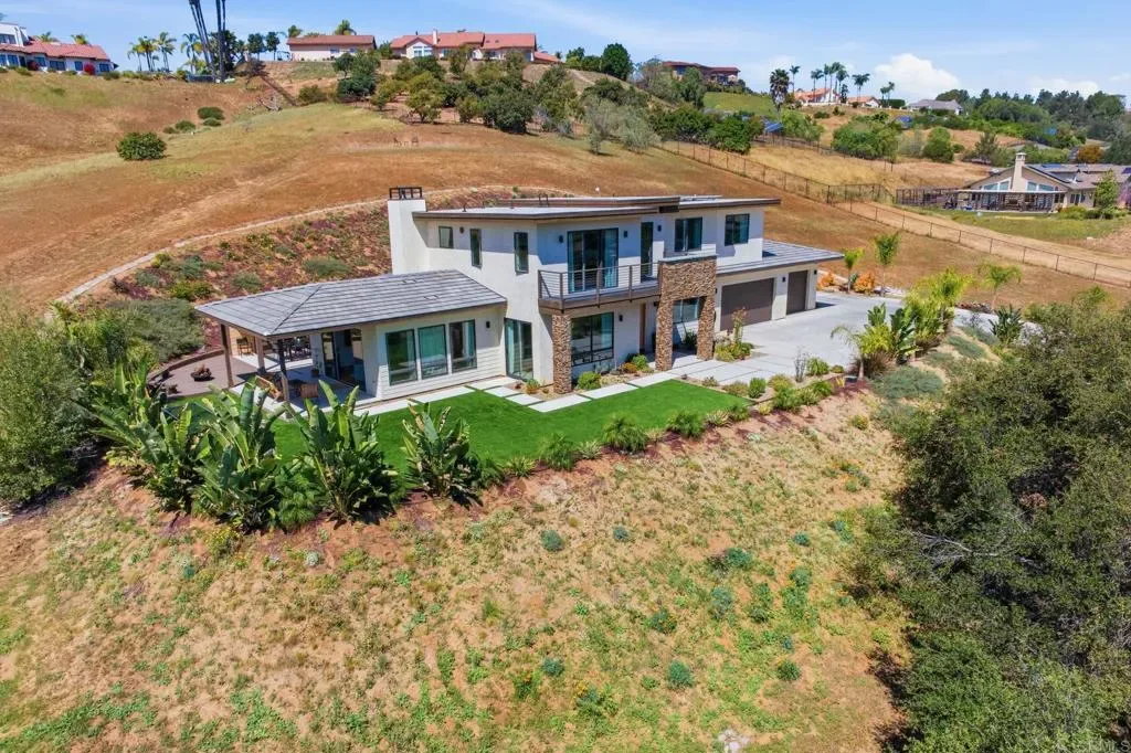 Tucked away in the scenic rolling hills of Fallbrook, this exceptional custom built property at 4407 Ramona Drive offers a refined blend of warmth, privacy and modern sophistication. Set on two expansive and usable acres in desirable South Fallbrook, the residence captures the essence of relaxed California living with an elevated design and contemporary comfort. Built in 2022, with finishing touches completed in 2025 including impactful updates that bring the design aesthetic up to the minute, this immaculate 3,334-square-foot home showcases superior craftsmanship and custom finishes throughout a bright, open-concept layout designed for both everyday living and effortless entertaining. Sunlight pours into the spacious interiors, where large windows frame beautiful views of the surrounding landscape, bringing the outdoors in and creating a seamless connection between indoor and outdoor living. Turnkey and modern, this kitchen impresses with an oversized island, stainless double ovens, an 8 burner range, abundant counter space, and extensive cabinetry. A beautifully appointed walk-in pantry adds both convenience and functionality, offering additional storage and prep space. The kitchen flows naturally into the open concept living and dining areas, creating an inviting setting perfect for gatherings of any size. Bamboo flooring adds warmth and balances the more modern touches. The thoughtfully designed floor plan includes four bedrooms as well as a large “bonus room” and 3.5 baths, offering flexibility for a variety of lifestyles. The spacious primary suite serves as a private retreat, while additional bedrooms are ideal for guests, home offices, or multi-generational living. Bonus space includes an upstairs loft area. All bathrooms are turnkey and updated with modern finishes. You have the possibility of a downstairs attached ADU, or Downstairs Primary Suite, as well as an attached oversized garage with a gym area and TV. Outdoor spaces are equally impressive, designed with both relaxation and entertainment in mind. Enjoy two covered patio areas, a hot tub with an outdoor TV, drought-tolerant landscaping and premium artificial turf that delivers a polished, resort-style ambiance. The available land provides endless possibilities—whether you envision a swimming pool, ADU, shop, grove, or vineyard, there is ample space to expand and customize the property to your vision. The opportunities for further development are plentiful and the property is on sewer, so any outdoor expansion can go wherever you like. This is where you get to make it your own! Additional highlights include ultra-efficient mechanical systems, a paid solar system, a long gated driveway, and a three-car garage—ensuring both sustainability and convenience. Ultra efficiency features include a whole house fan, extra efficient insulation and solar monitoring and Title 24 HVAC and solar upgrades! Offering a rare combination of modern luxury, space, and tranquility, this South Fallbrook estate presents an outstanding opportunity to own a high-quality home surrounded by mature natural oak trees for extra privacy. Enjoy the outdoor covered patios and entertaining areas, or simply take in the open space and fresh air. The Rancho Fallbrook neighborhood also includes access to a beautiful private lake to enjoy year round! Fallbrook is known for its tranquil setting, mild climate, ocean breezes and strong sense of community, making this an ideal place to call home. Commuter friendly location with convenient proximity to the HWY 15/76 corridor includes easy access to beaches, coastal dining and shopping! Call today to view this home and make it your own!