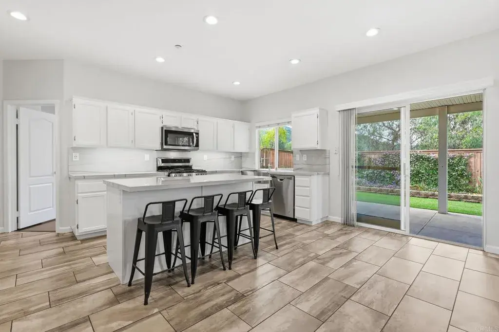 Hard to find 5 bedroom family home in Lake Rancho Viejo! Bonsall School district! This property has so much to offer! PAID FOR SOLAR! New quartzite counter tops with full back splashes in kitchen! Fireplace in Family room. New paint throughout! New Whole house attic fan! New epoxy pebble floor in the 3 car garage, newer Alumawood patio cover in all landscaped rear yard. Primary bedroom has a 2 sided fireplace and has an adjacent side retreat or nursery room. HUGE walk in closet! Convenient upstairs laundry room. Fire sprinklers throughout! No one behind as this property backs up to open space preserve. Private and quiet Cul de sac location, Lake Rancho Viejo offers scenic walking trails, parks and playgrounds and recreational areas! Easy access to I-15!