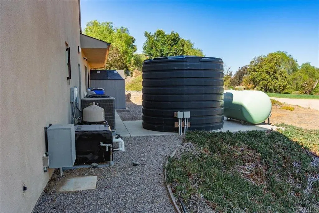 For the distinctive buyer looking for privacy, land to create your own lifestyle, 1st floor primary bedroom, nearly 1,000 square foot garage space for car collectors and more…… Modern Sophistication Meets Tranquil Fallbrook Living. Step into a world where modern architecture and natural beauty converge. This contemporary masterpiece in an exclusive gated community in Fallbrook offers 3,642 square feet of sophisticated living, seamlessly blending clean lines, warm materials, and exceptional craftsmanship. Designed to live like a single-story residence, this home offers the perfect balance of luxury, functionality, and privacy — all set in one of North County’s most serene landscapes. Architectural Design & Flow. The open-concept layout is anchored by dramatic sight lines and expansive glass that blur the boundary between indoors and outdoors. A floating staircase serves as a sculptural centerpiece, leading to the home’s upper-level with potential in-law suite and 3 more bedrooms, while the primary bedroom and all main living spaces reside on the first floor for effortless single-level living. Andersen pocket doors fully retract into the walls, revealing a spectacular central courtyard with pool and sun-drenched lounging areas creating a private indoor-outdoor sanctuary perfect for entertaining or quiet relaxation. Luxury Finishes & Details. Every element of this home was curated with precision and purpose: Sub-Zero and Thermador appliances, including double ovens and warming drawers, elevate the culinary experience. Restaurant-like pantry with butler’s door. Hansgrohe plumbing fixtures provide refined European design throughout each bath. The real wood-burning fireplace, also plumbed for gas, offers warmth and ambiance in the great room. Striking Eleganza tile flooring flows through the interior, adding texture and sophistication. Every space reflects a commitment to high design, blending functionality with timeless appeal. Primary Suite & Guest Accommodations. The first-floor primary suite offers serenity and comfort, featuring direct access to outdoor living areas and poolside tranquility. A private in-law suite provides a perfect retreat for extended family or guests, while additional bedrooms upstairs enjoy exceptional privacy and sweeping views. Performance & Infrastructure. Engineered for modern living, the home includes: A three-car garage (potential for 4 cars) spanning approximately 1,000 square feet, ideal for vehicles and storage, with a pass through garage door to the wrap-around driveway. A 450-gallon propane tank supporting premium kitchen appliances and energy efficiency. Two AC condensers for zoned comfort throughout the home. A well producing 25 gallons per minute with a 2,800-gallon holding tank offering independence and reliability. Privacy, Comfort & Setting. Located within a gated enclave of contemporary estates, this residence offers both security and serenity. Thoughtful design ensures every room has a connection to the landscape whether it’s sunlight cascading across the courtyard pool or evening breezes drifting through fully opened walls of glass. A Statement of Modern Living. This is more than a home; it’s a lifestyle statement, built for those who appreciate architectural integrity, quality materials, and seamless indoor-outdoor flow. Every space invites you to relax, entertain, and enjoy Fallbrook’s natural beauty in contemporary luxury. With over 2 acres of land at your avail, there are a plethora of opportunities for the land (ADU, lease to produce company/wine company, etc.) Space for RV, boat.