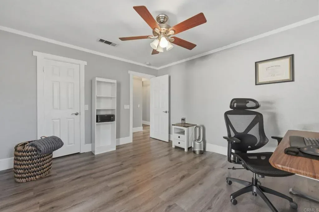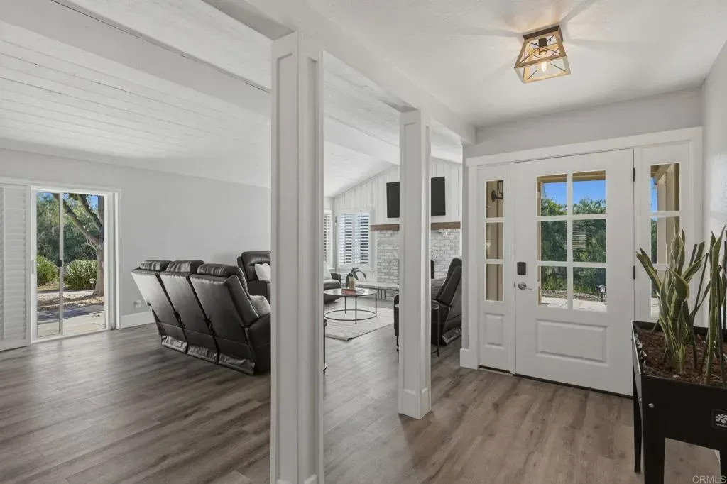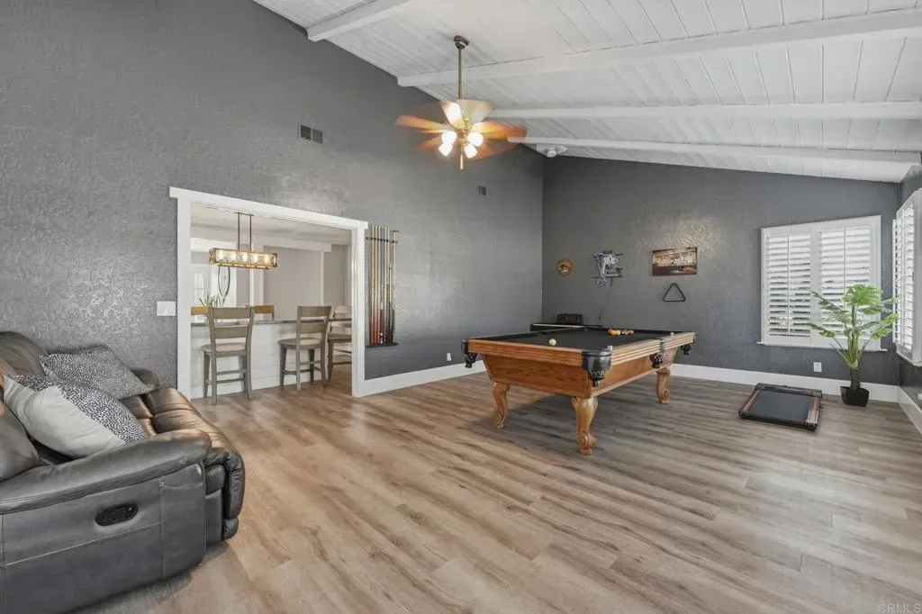 Situated on a sprawling 0.65-acre lot, this beautifully maintained 3-bedroom, 2-bath residence offers 2,280 sq ft of comfortable yet refined living space. The modern upgraded kitchen and Bluetooth-integrated home features create a seamless blend of convenience and style designed for everyday living and effortless entertaining. Step outside to your own private resort-style retreat, featuring a sparkling saltwater pool surrounded by peaceful views that capture the essence of Fallbrook’s sought-after rural charm. Whether hosting gatherings under the stars or enjoying quiet mornings poolside, this property delivers the perfect balance of relaxation and lifestyle. The property also features a versatile detached shed with electricity located near the pool, ideal for use as a workshop, home gym, creative studio, or private he/she retreat — offering endless possibilities to customize the space to your needs. Additional highlights include: • Oversized 2-car garage with 220V EV charging, large enough to comfortably accommodate two full-size trucks • Ample driveway space with room for RV parking • Water-wise landscaping designed for beauty and efficiency • Leased solar for energy savings • Multiple mature fruit trees including Lemon, Blood Orange, Peach, Apple, and Fig Perfectly located just 20 minutes to Temecula’s world-class wineries, 30 minutes to the beach, and under an hour to downtown San Diego, this home offers the rare combination of privacy, serenity, and convenient access to everything Southern California has to offer. Move-in ready. Turnkey. Truly exceptional. Opportunities like this in Fallbrook are few and far between — don’t miss your chance to own this one-of-a-kind property.