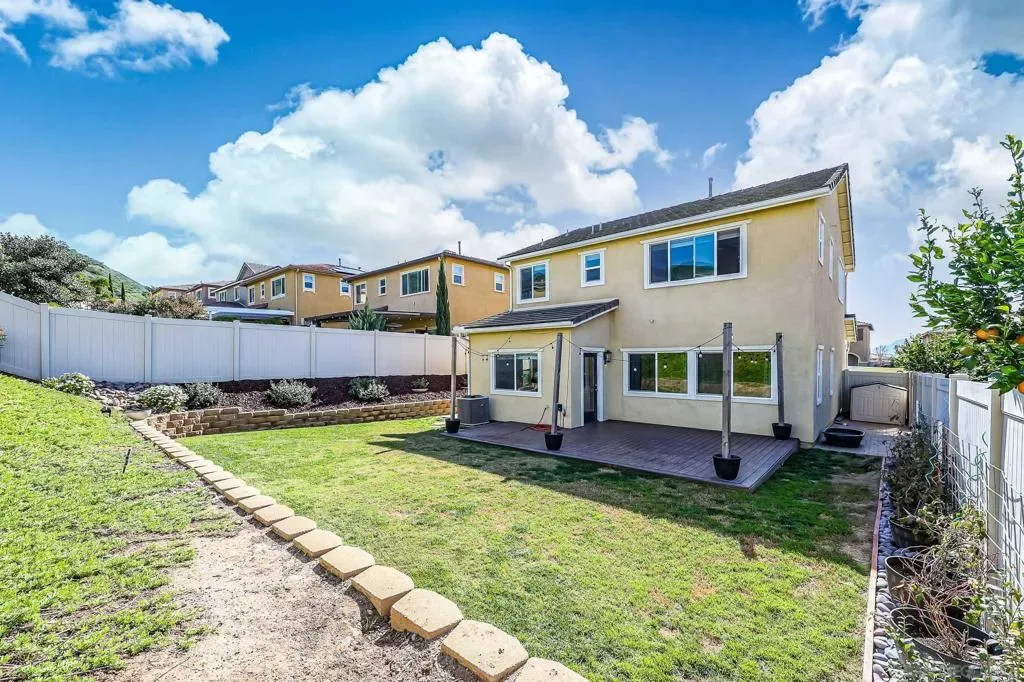 Welcome to 310 Falabella Ln—a bright, modern 4-bedroom, 3-bath home with 2,213 sq ft of living space on a 6,657 sq ft lot, built in 2018, in the Oakmont neighborhood of the highly desirable Horse Creek Ridge master-planned community. Step inside to an airy entry and stylish flooring, plus the convenience of a main-floor bedroom and full bath—ideal for guests, multigenerational living, or a dedicated home office. The open-concept layout flows into a spacious family room and an upgraded kitchen featuring an oversized island, granite counters, white cabinetry, and a walk-in pantry, along with built-in range, dishwasher, and microwave. Out back, enjoy a wood deck and a generous grassy yard—perfect for relaxed weekends and easy entertaining. Upstairs you’ll find the primary suite with a soaking tub, separate shower, and dual sinks, plus two additional bedrooms connected by a Jack-and-Jill bath. Bonus features include upstairs laundry, central A/C, a tankless water heater, and an attached 2-car garage with direct access. As part of Horse Creek Ridge, residents enjoy resort-style amenities including a pool, spa, clubhouse, BBQ/picnic areas, playgrounds, and hiking & horse trails, with a low monthly HOA. Conveniently located near I-15 and Hwy 76, this is North County living at its best