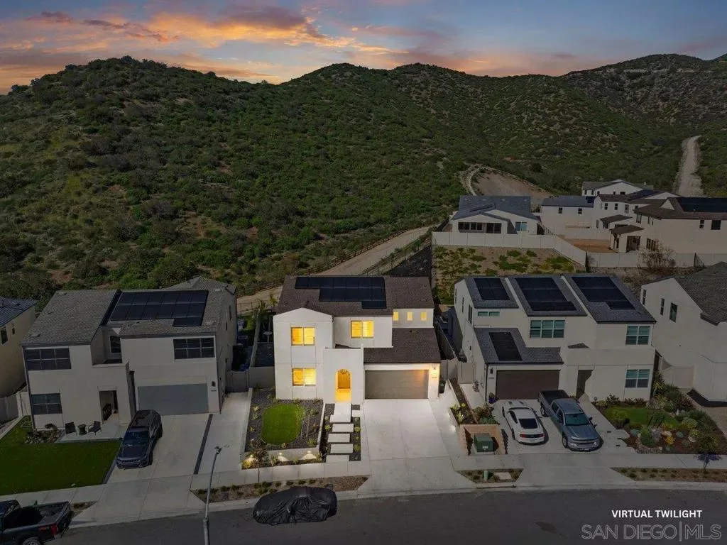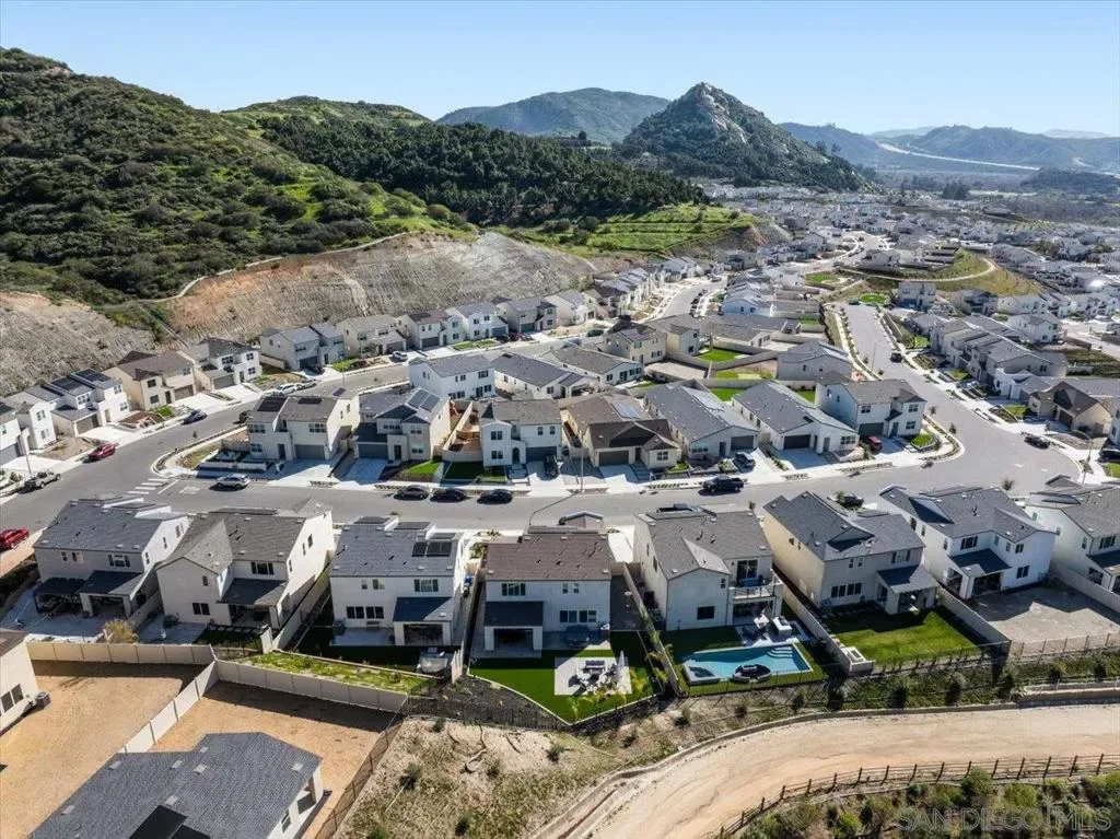 Experience single-level luxury in the sought-after Citro Community, Fallbrook nestled conveniently between the 15 and 76 Freeways in a lovely family friendly neighborhood. Roughly two miles from either freeway you are just minutes from Temecula’s fabulous wineries and restaurants, yet close enough to the Pacific Ocean for an easy weekend trip to the beach. This 4 bed, 3 bath , Plus Loft , 2 Car Attached Garage built in 2024 ( 1 bedroom & Full Bathroom Downstairs. ) home delivers sophisticated, turnkey living with premium upgrades throughout. Enjoy walnut hardwood floors, designer kitchen with quartz counters, and seamless indoor-outdoor flow. Modern comforts include a security system, water softener, reverse osmosis, insulated garage, and covered patio. Resort-style amenities and a prime commuter-friendly location complete this exceptional offering. Discover refined Fallbrook living today. Terrific community pool and clubhouse and plenty of hiking trails just steps from your front door. This location is perfect for peace and serenity, away from the hustle and bustle of busy lifestyles. This uniquely styled, newly built home, only one year old, has all the highly coveted attractions of newness and freshness. As a new Construction , the property includes builder Warranties and comes with solar already installed. WITH ABSOLUTELY EVERY FEATURE UNDER ONE YEAR OLD THIS HOME IS MOVE-IN READY NOW! Pictures for second & third upstairs bedrooms are coming as more pictures for the primary bedroom.