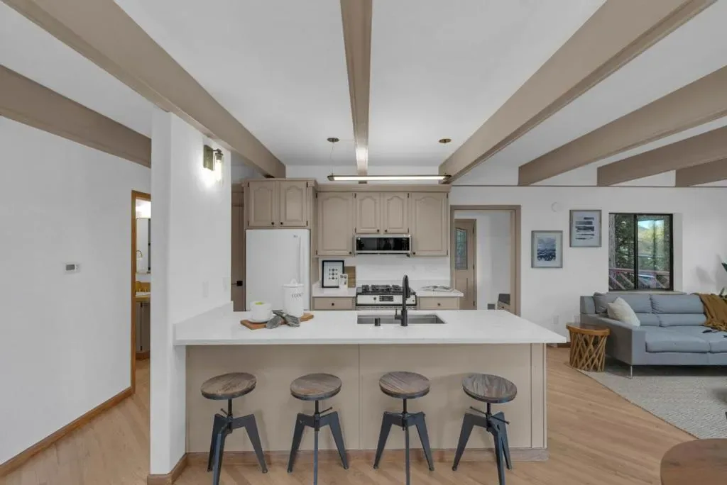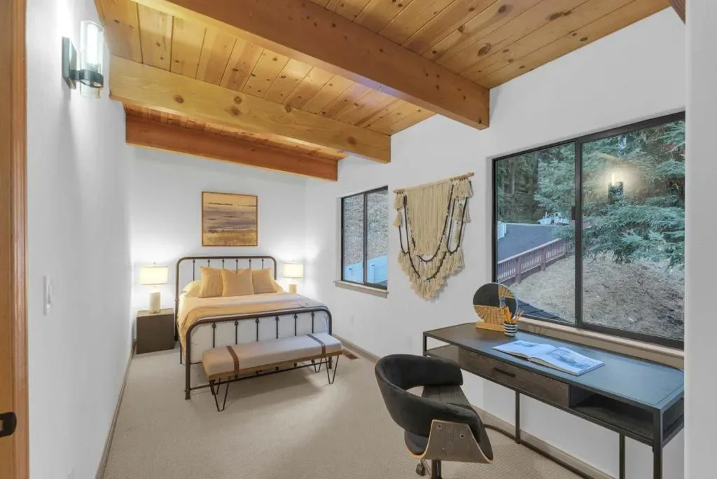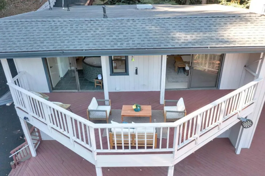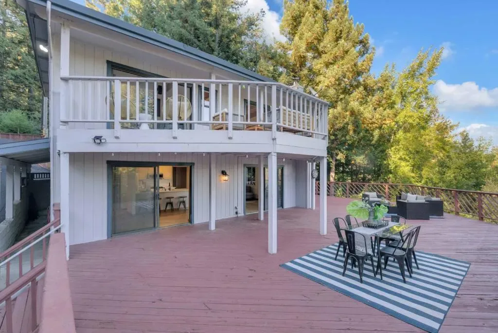 Price improvement!! It’s rare to find a lot this size (98,838 SqFt) with lots of usable land. There’s enough space to add an ADU up to 1200sqft or split the lot and build another home (Buyer to verify). This unique location near the end of West Dr. offers an extra level of privacy, gets lots of sunlight and boasts spectacular views of the valley. This lovely 2b/1.5ba gem has been elegantly updated inside and out, with almost $80k invested. The expansive wrap around deck and 2nd level balcony are perfect for entertaining or relaxing. The kitchen features new quartz countertops, new sink, new microwave, new gas range, dishwasher, and new refrigerator. The family room is seamlessly integrated with the dining area, creating an inviting space for gatherings, and features a fireplace that adds warmth & charm. Upstairs: both bedrooms, a full bathroom, washer/dryer, and the private jetted tub room with views. You’ll feel like you’re in your own private spa resort! Theres plenty of storage in the sheds, and lots of room under the deck. City water! Upgrades include: Fresh paint, refinished hardwood floors, brand new carpet, new light fixtures, repaved driveway, Tesla wall battery, and much more. 1.5 miles to Loch Lomond. 12 minutes to Safeway, 20 min to Santa Cruz, and 45 min to Los Gatos