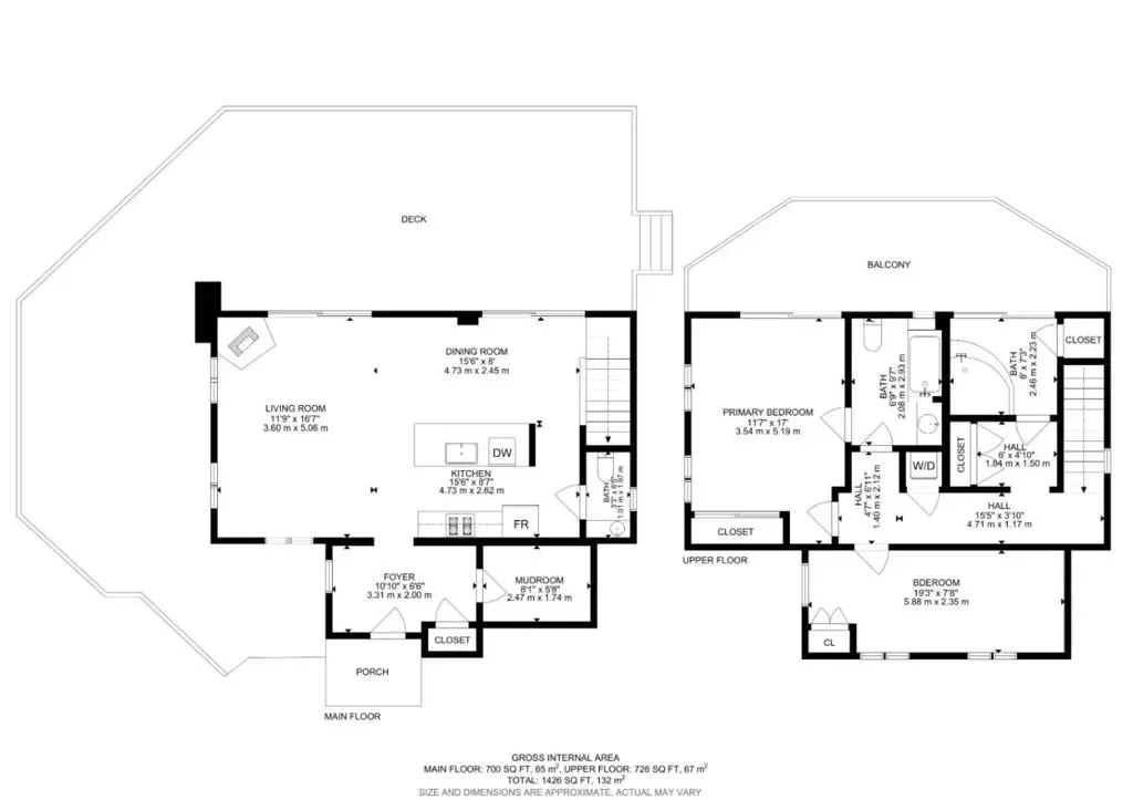 1 Full Bathroom, 1 Half Bathroom