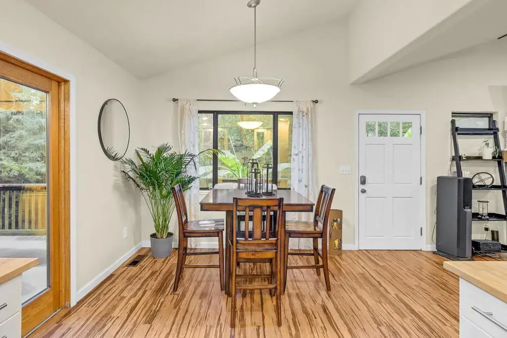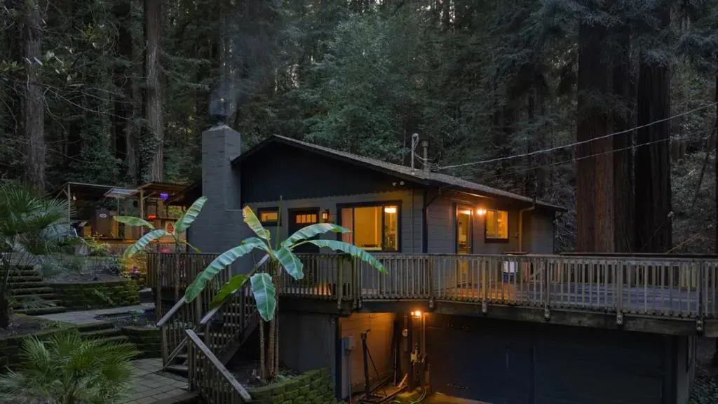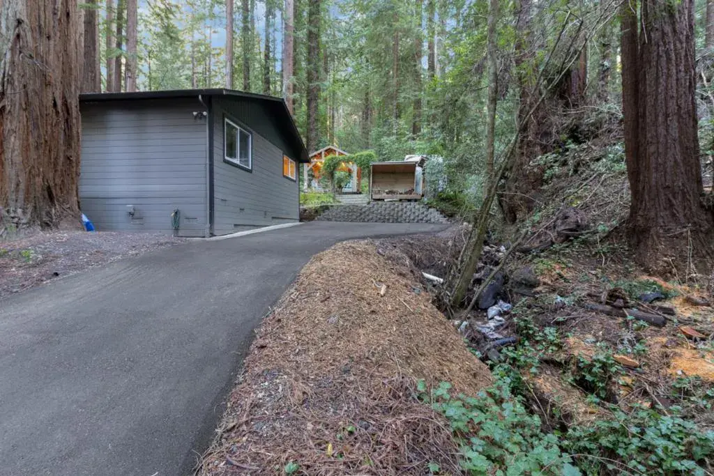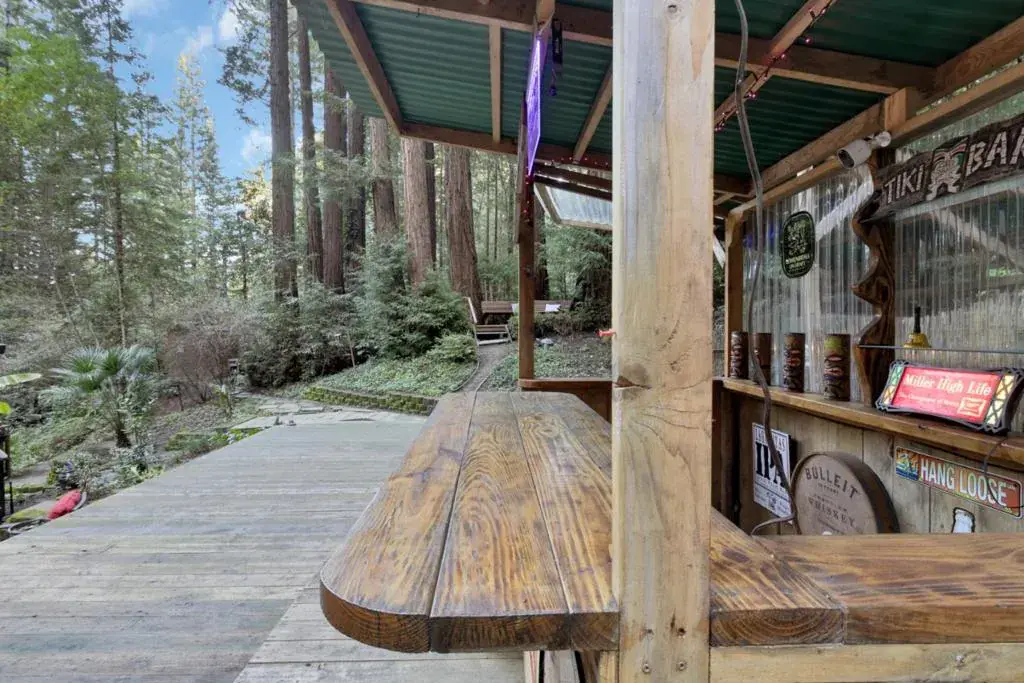 An entertainers paradise awaits in this charming home, featuring expansive backyard decking and a covered outdoor barperfect for crafting cocktails and hosting lively gatherings beneath the majestic Redwood trees. Winding pathways, tranquil seating nooks, and lush mature landscaping create a private retreat youll never want to leave. Inside, the thoughtfully designed floor plan offers a seamless flow between rooms, with expansive windows that flood the space with natural light and showcase the surrounding greenery. Vaulted ceilings enhance the spacious feel, while a cozy fireplace provides the perfect spot to unwind on chilly evenings. The recently renovated kitchen and dining area extend to an additional deck, ideal for relaxing under the stars. Located just minutes from downtown Feltons inviting restaurants like The Grove, scenic trails at Henry Cowell State Park, and the stunning beaches of Santa Cruzthis home blends tranquility with convenience.