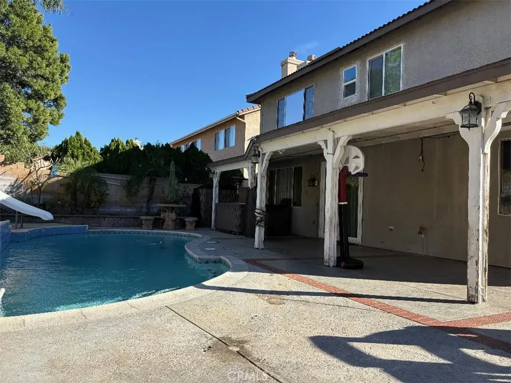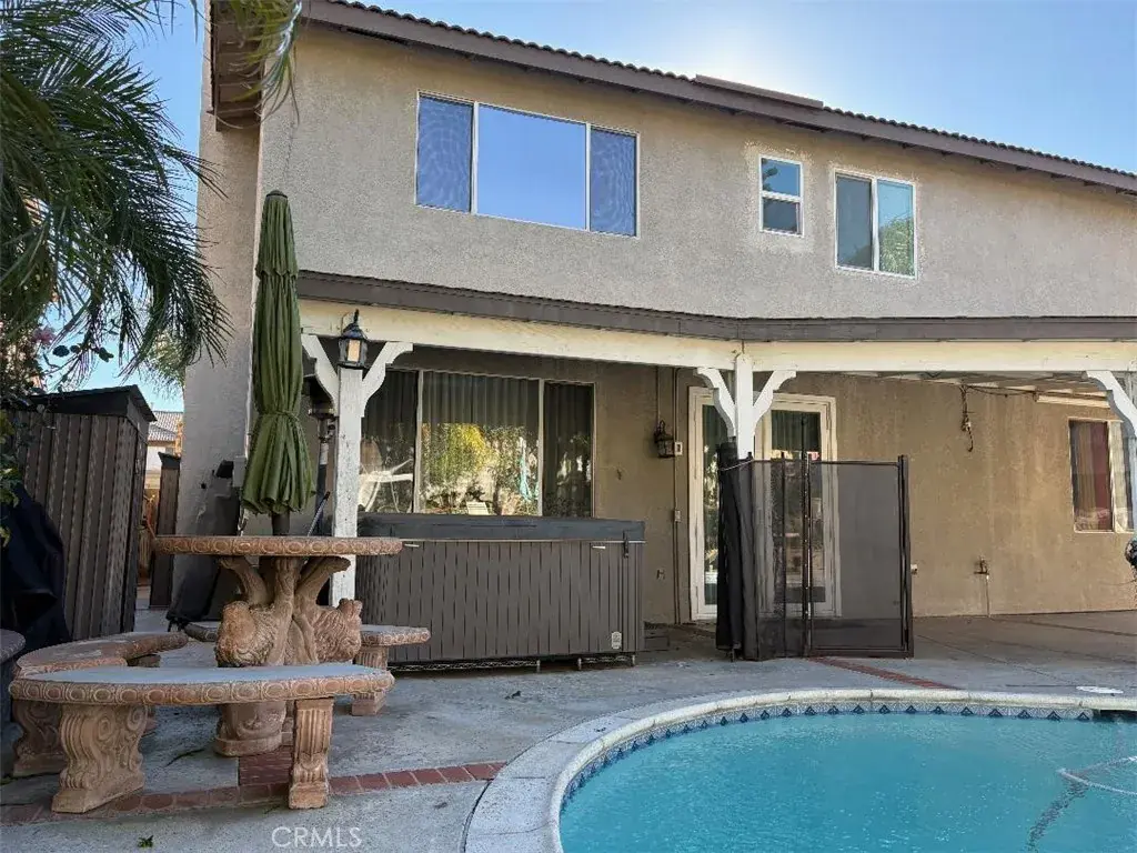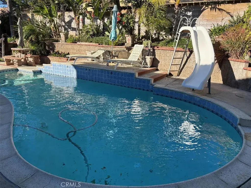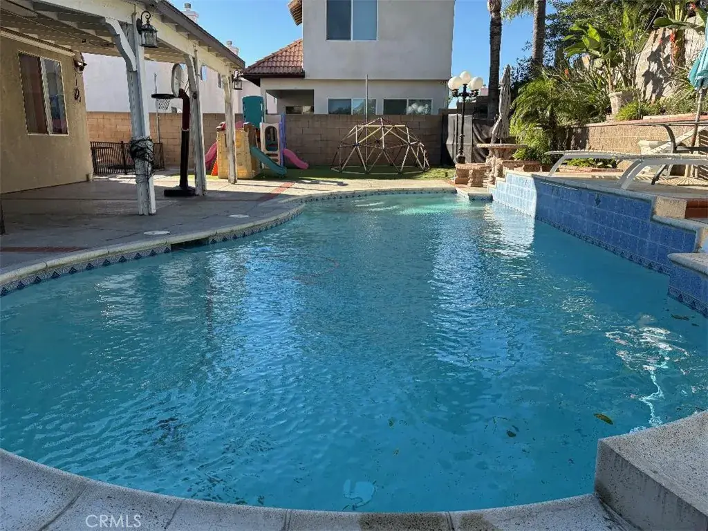 Welcome to your dream home featuring a sparkling pool in the highly desirable North Fontana community of Morningside. This beautiful well maintained two-story residence offers 5 bedrooms and 3 bathrooms, spanning 2,830 square feet of thoughtfully designed living space. The home is nestled in the tranquil, non-HOA neighborhood, perfect for growing families and multi-generational living. Upon entry, you are greeted by an inviting spacious living room, were you’ll find soaring ceilings, recessed lighting, crown moldings, laminate wood and tile floors throughout, several windows that flood the space with abundant natural light, creating an airy and open atmosphere. The adjacent formal dining area is ideal for hosting family gatherings and special occasions. The open-concept kitchen is well appointed with ample cabinetry, walk-in-pantry, granite countertops, stainless steel appliances and a center island with sink-perfect for everyday family meals and entertaining. The cozy family room features a charming gas fireplace and large sliding doors that frame picturesque views of the backyard. A downstairs bedroom and full bathroom provide convenience and comfort for guest or extended family. Upstairs, the expansive 16′ x 24′ primary suite is a true retreat, complete with a large 10′ x 11′ walk-in closet and fully remodeled spa-like bathroom featuring heated floors, dual sinks. walk-in shower with dual rain showerheads and a separate soaking tub. Four additional generously sized bedrooms share a remodeled hallway bathroom with dual sinks and dual showerheads. A second upstairs family room offers flexible space for a home office, playroom or media room. Step outside to the beautiful landscaped backyard designed for family fun entertaining. Enjoy the in-ground sparkling pool with separate hot tub under a covered wood patio with ambient lighting-perfect for outdoor dinning and enjoying California’s year-round sunshine. Additional highlights include fully PAID-OFF SOLAR PANELS, new WATER SOFTENER system and WATER HEATER, a three-car garage with newer roll-up doors and wall mounted openers, and RV parking providing ample space for all your vehicles and storage needs. Conveniently located near Victoria Gardens, freeways, multiple shopping options, plenty of top eateries, and within distinguished top-rated Award-Winning Etiwanda School District, this exceptional home truly has it all. Don’t miss this incredible opportunity to make this exquisite North Fontana home your own!