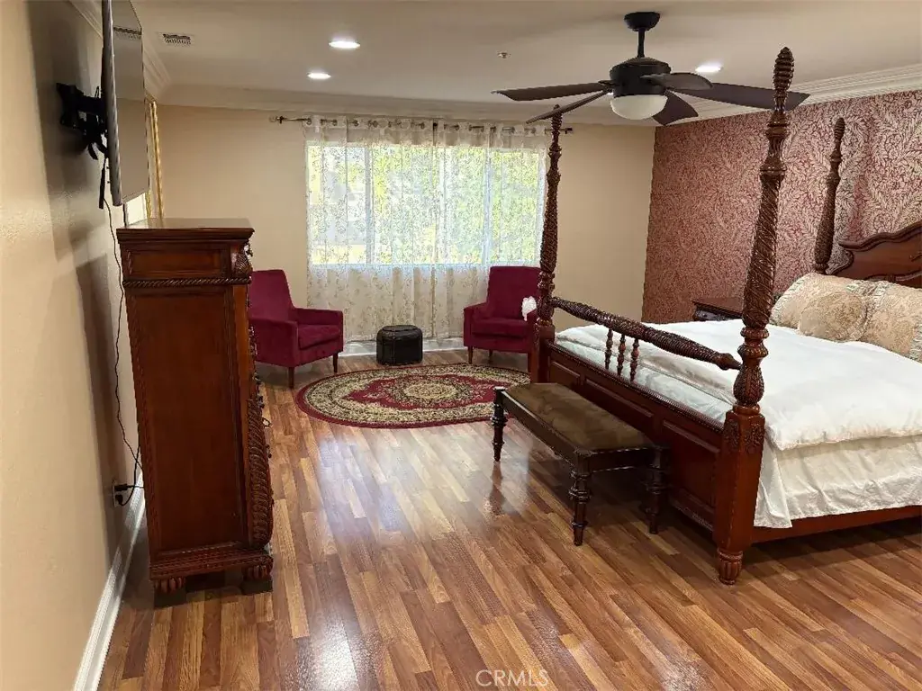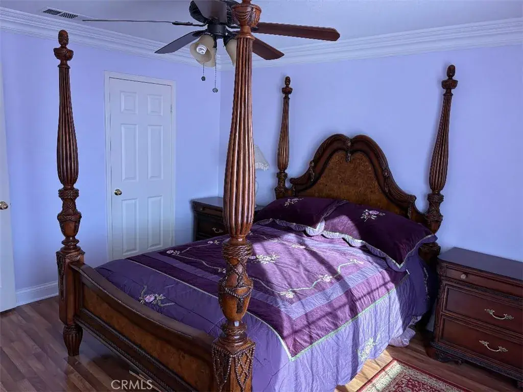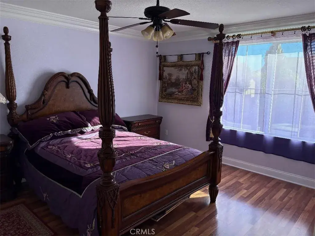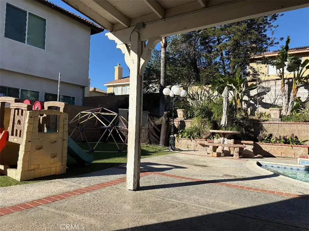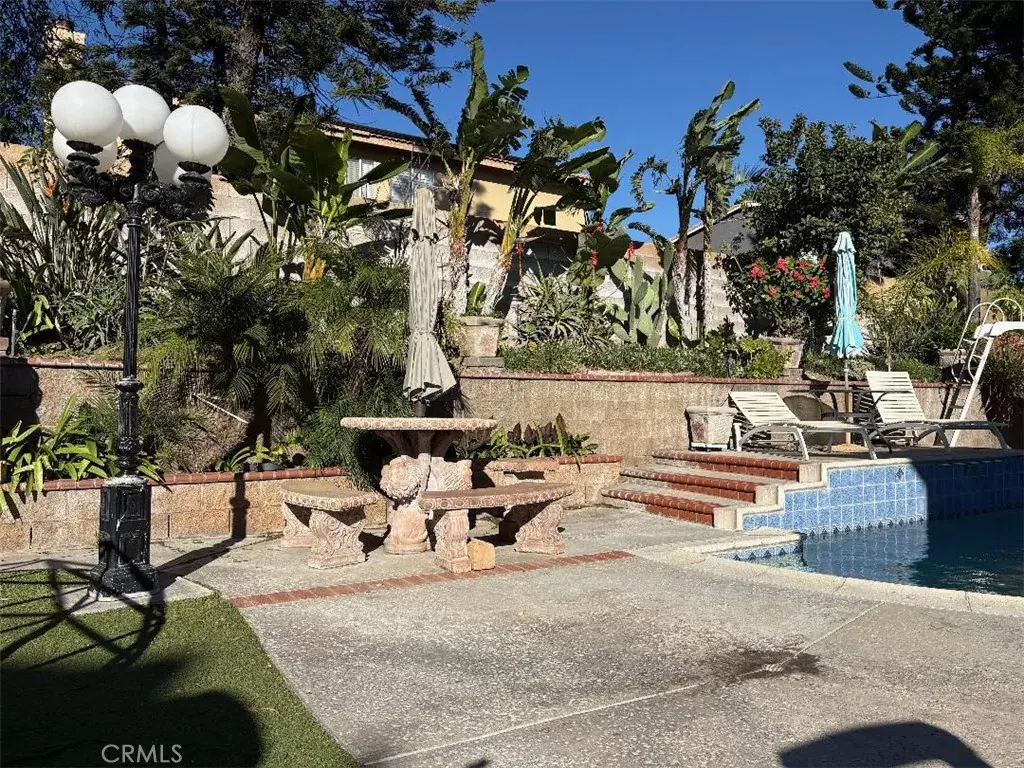 Welcome to your dream home featuring a sparkling pool in the highly desirable North Fontana community of Morningside. This beautiful well maintained two-story residence offers 5 bedrooms and 3 bathrooms, spanning 2,830 square feet of thoughtfully designed living space. The home is nestled in the tranquil, non-HOA neighborhood, perfect for growing families and multi-generational living. Upon entry, you are greeted by an inviting spacious living room, were you’ll find soaring ceilings, recessed lighting, crown moldings, laminate wood and tile floors throughout, several windows that flood the space with abundant natural light, creating an airy and open atmosphere. The adjacent formal dining area is ideal for hosting family gatherings and special occasions. The open-concept kitchen is well appointed with ample cabinetry, walk-in-pantry, granite countertops, stainless steel appliances and a center island with sink-perfect for everyday family meals and entertaining. The cozy family room features a charming gas fireplace and large sliding doors that frame picturesque views of the backyard. A downstairs bedroom and full bathroom provide convenience and comfort for guest or extended family. Upstairs, the expansive 16′ x 24′ primary suite is a true retreat, complete with a large 10′ x 11′ walk-in closet and fully remodeled spa-like bathroom featuring heated floors, dual sinks. walk-in shower with dual rain showerheads and a separate soaking tub. Four additional generously sized bedrooms share a remodeled hallway bathroom with dual sinks and dual showerheads. A second upstairs family room offers flexible space for a home office, playroom or media room. Step outside to the beautiful landscaped backyard designed for family fun entertaining. Enjoy the in-ground sparkling pool with separate hot tub under a covered wood patio with ambient lighting-perfect for outdoor dinning and enjoying California’s year-round sunshine. Additional highlights include fully PAID-OFF SOLAR PANELS, new WATER SOFTENER system and WATER HEATER, a three-car garage with newer roll-up doors and wall mounted openers, and RV parking providing ample space for all your vehicles and storage needs. Conveniently located near Victoria Gardens, freeways, multiple shopping options, plenty of top eateries, and within distinguished top-rated Award-Winning Etiwanda School District, this exceptional home truly has it all. Don’t miss this incredible opportunity to make this exquisite North Fontana home your own!