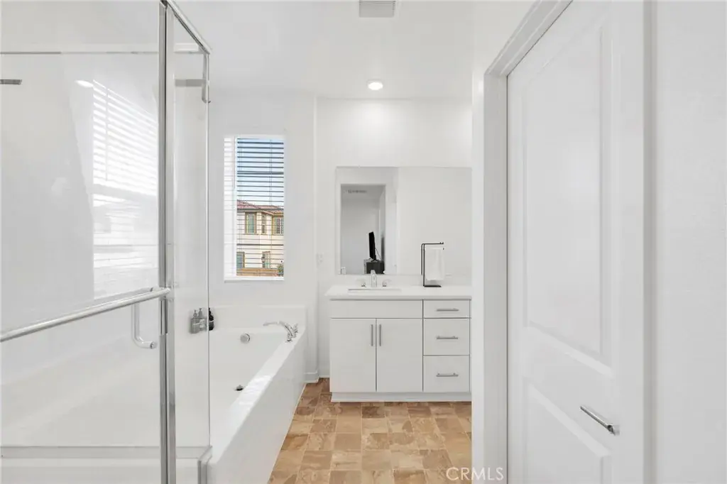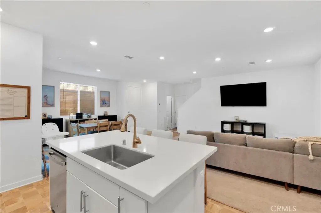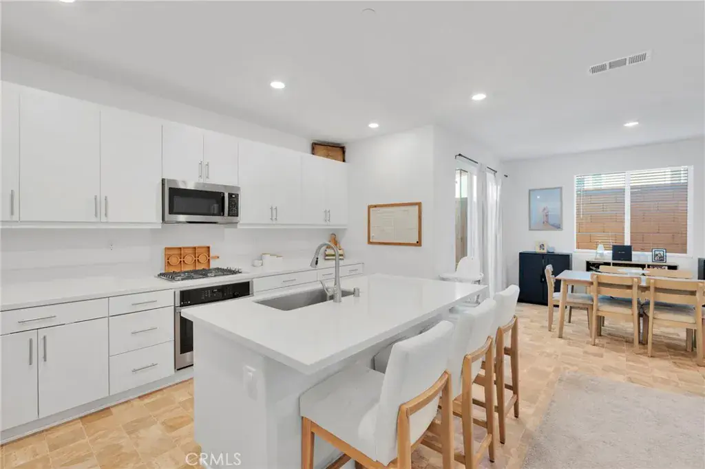 Introducing 16604 Quince Lane. This stunning four-bedroom, two-and-a-half-bath home, built in 2024, offers 1,868 square feet of modern living in one of North Fontana’s most desirable gated communities, The Arboretum. The open-concept layout features recessed lighting, energy-efficient double-pane windows, and durable vinyl flooring throughout the main level. The gourmet kitchen is appointed with quartz countertops, a large island, self-closing cabinets and drawers, pots and pan storage, and stainless-steel appliances including a gas range, microwave, and dishwasher. The kitchen flows seamlessly into the spacious family room, creating an inviting space for both everyday living and entertaining.