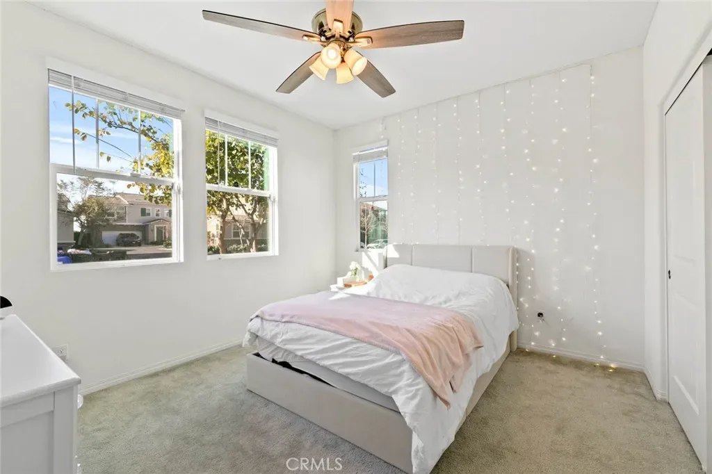 Beautiful home in a desirable Fontana community featuring 4 bedrooms, 3 bathrooms, and a loft. One bedroom and full bath on the main level, ideal for guests or multi-gen living. Open-concept kitchen with large island flows into dining and living areas. Spacious primary suite with dual sinks, soaking tub, and separate shower. Private backyard perfect for relaxing or entertaining. Community amenities include pool, spa, clubhouse, playground, and basketball court. A must-see!