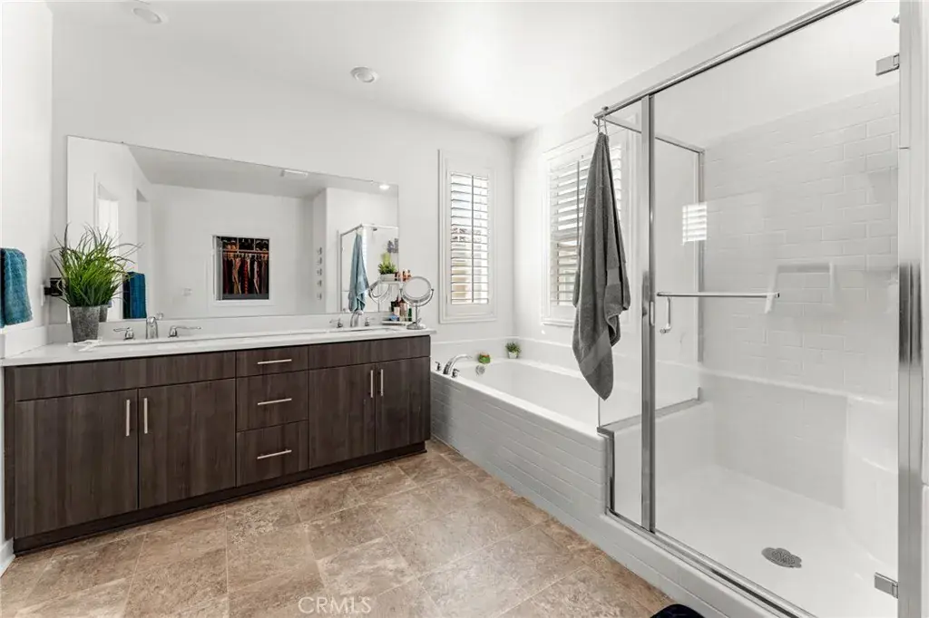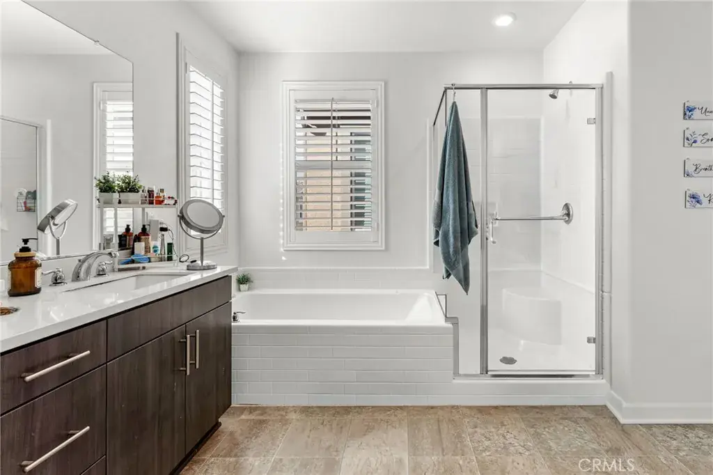 All bedrooms are well-sized, but the primary suite truly stands out – large enough to accommodate a private sitting area or office space. The primary bathroom features both a soaking tub and separate shower, along with a spacious walk-in closet.