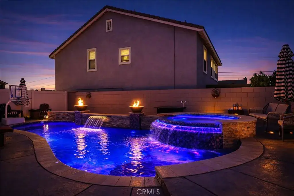Renovated with Pool & Spa – Resort-Style Living in Hunter’s Ridge. Welcome to this beautifully renovated two-story home located on a quiet cul-de-sac in the prestigious Hunter’s Ridge community. Offering 4 bedrooms, 3 bathrooms, and 2,305 sq ft of thoughtfully designed living space, this turn-key residence blends modern upgrades with timeless appeal. Step inside to soaring ceilings, abundant natural light, and a seamless open-concept layout ideal for everyday living and entertaining. The updated kitchen features sleek quartz countertops, a large center island, generous cabinetry, and modern finishes, opening effortlessly to the dining and living areas anchored by a cozy fireplace. The backyard is a true private retreat. Enjoy a new PebbleTec saltwater pool and spa, complete with cascading waterfalls, 22 customizable LED light settings, dual fire pits, lush landscaping, low-maintenance turf, and multiple seating areas — perfect for entertaining or unwinding in total privacy. Upstairs, the expansive primary suite offers a spa-inspired en-suite bathroom and ample closet space. Three additional bedrooms provide flexibility for family, guests, or a home office, all featuring new carpet with plush memory foam padding. Additional highlights include central heating and air, a two-car attached garage, and a prime location within the highly sought-after Etiwanda School District, close to shopping, dining, and commuter routes.