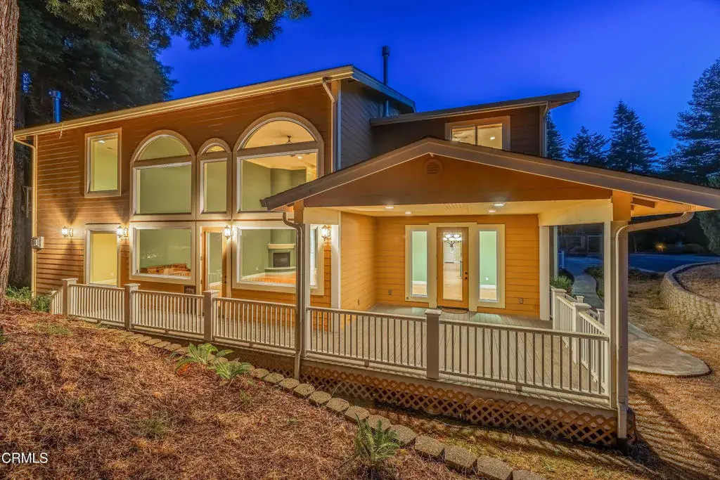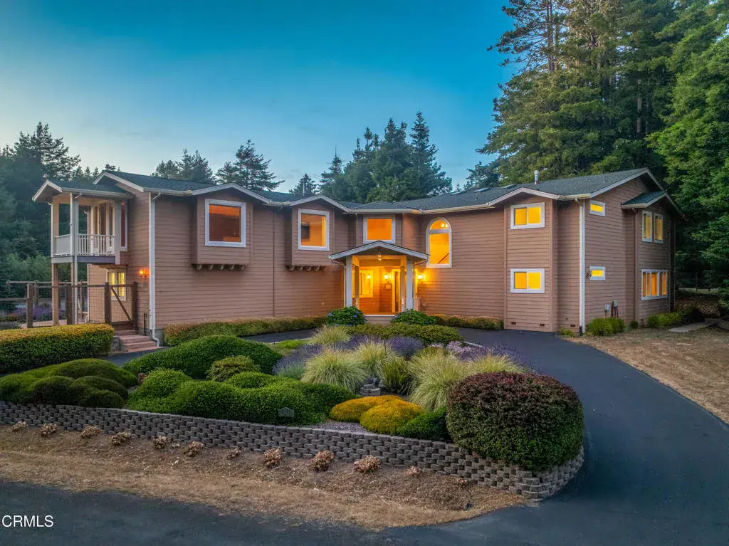 Experience elevated living in this custom-designed luxury home, thoughtfully built for comfort, connection, and independence. Expansive floor-to-ceiling windows flood the tastefully structured floor plan with natural light, enhancing the serene atmosphere throughout. This spacious home features three private bedroom suites, each offering its own sitting area, fireplace, oversized bathroom, and walk-in closet. The primary suite is conveniently located on the main floor, tucked away off the great room for privacy and ease. Upstairs, you’ll find two additional suites and a grand music room complete with its own bathroom and private balcony. A residential elevator provides seamless access between levels, adding ease and accessibility. The chef’s kitchen is a culinary dream, equipped to accommodate multiple cooks and opening onto both a formal dining room and a cozy breakfast room. A huge walk-in pantry provides extensive storage, while the adjacent laundry room and home office nook offer functional daily living spaces that blend practicality with comfort. A massive 1,200-square-foot fully insulated three-car garage is conveniently located nearby and accessible from the breakfast room for easy delivery into the kitchen. Efficient zoned heating systems ensure optimal comfort throughout the home. Sustainable features include private wells with two 1,500-gallon water storage tanks (with hookups for fire hoses) and a private septic system, making this a dream home for independent living. A whole-house automatic generator further enhances peace of mind. Outside, the immaculately maintained grounds feature separate fenced areas to keep pets and children safe. Perched high in a fairy ring of old-growth redwoods is a truly magical feature — a professionally built and fully permitted treehouse, designed by The Treehouse Guys from the DIY Network. This nationally televised project is accessible via a welcoming staircase and offers sweeping treetop views — a whimsical escape for all ages. Lovingly maintained by its original owners, this home is now offered for sale for the first time. Every detail reflects the care and vision of those who created it. Now, it’s ready for its next chapter — could you be the one to write it?
