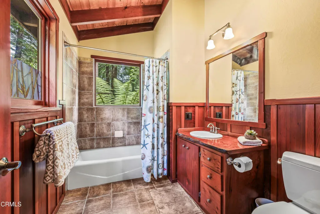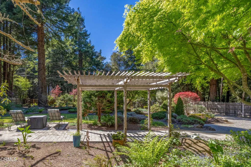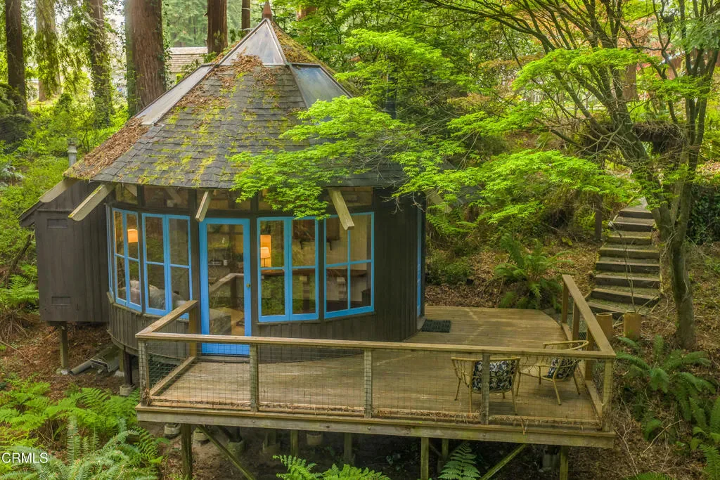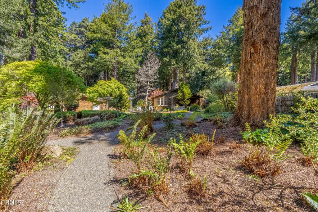 Tucked behind a private, automatic gated entry and fully fenced for ultimate seclusion, this extraordinary property unfolds like your own personal botanical sanctuary where the noise of the outside world fades and nature takes center stage. Just minutes from town and the coastline, it offers a rare balance of peaceful country living with effortless access to coastal amenities.Set within a park-like landscape of meticulously trimmed, towering redwoods that filter sunlight beautifully throughout the grounds, the custom-built home is warm, inviting, and rich with character. Inside, vaulted old-growth redwood ceilings, custom woodworking, and thoughtfully placed windows create a seamless connection between indoor comfort and the surrounding natural beauty. Warm tile flooring flows through the main living areas, anchored by a wood-burning fireplace and complemented by a sun-drenched solarium, perfect for year-round relaxation.The primary suite offers a peaceful retreat with an additional loft space ideal for guest accommodations, while both bedrooms feature large, redwood-trimmed windows that invite the outdoors in. Custom cabinetry enhances both form and function throughout the home. Designed for both wellness and creativity, the property features a private hot tub and sauna, along with a truly one-of-a-kind guest experience–a custom-crafted studio built from a converted water tank. This artistic space offers incredible flexibility as guest quarters, a vacation rental, or a private creative retreat, complete with its own deck for enjoying sunny afternoons or listening to coastal rain against the skylights. The newly finished garage expands the usability of the property with two private workshop spaces ideal for a home gym, studio, or hobby space, along with extended enclosed storage for bikes, tools, and coastal gear. A large water storage system and irrigation support the lush grounds, enhancing both sustainability and ease of maintenance.Two distinct entry points welcome you home. One from the south, guiding guests through the gardens, and a west-facing entrance where the gentle sounds of a fish pond create an immediate sense of calm. This is more than a home–it’s an experience. A place where tranquility, creativity, and comfort come together in one truly special offering.
