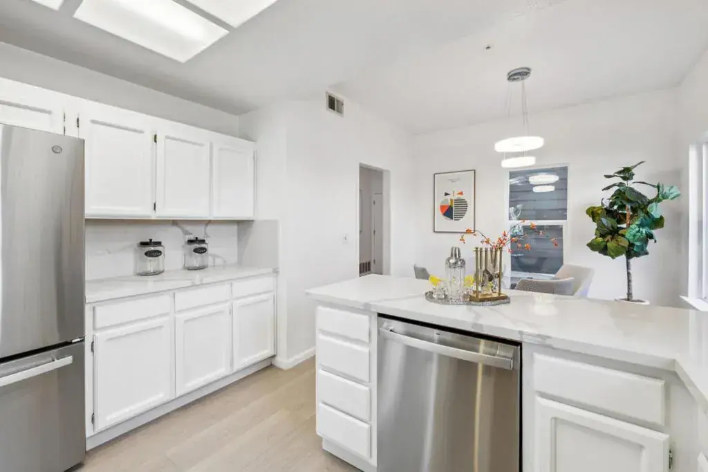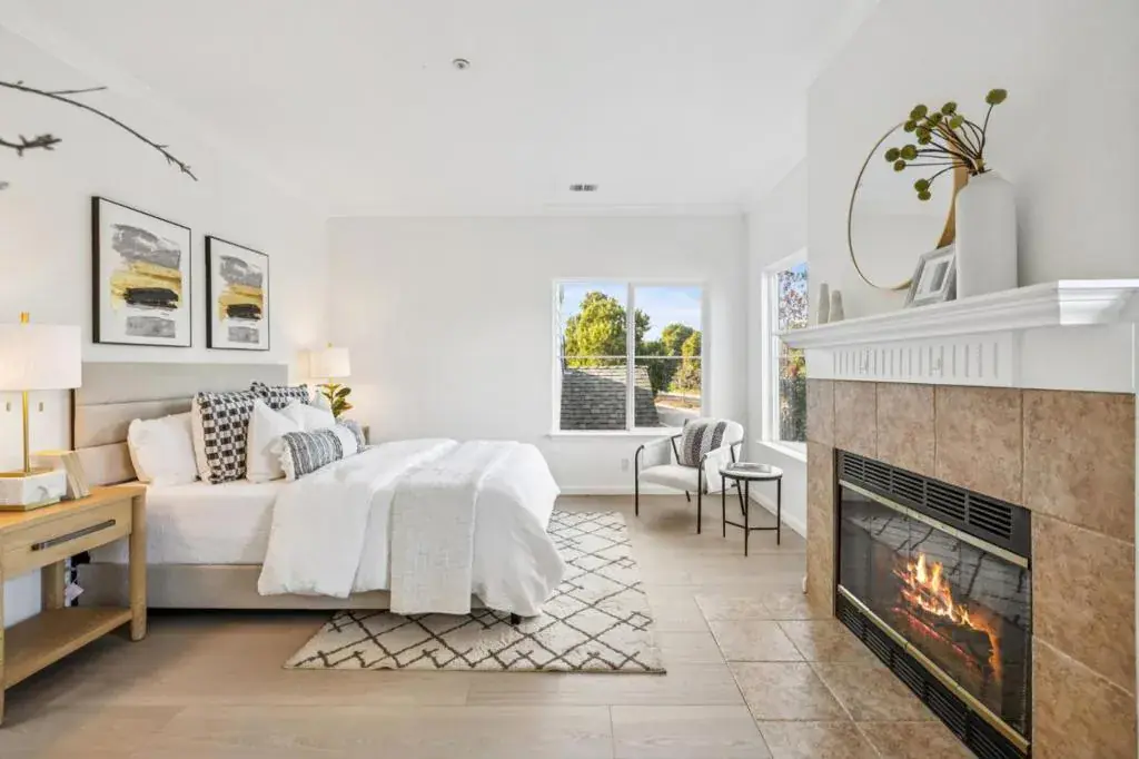 Stunning end unit modern townhome nestled in scenic park-like setting in desirable Nantucket Cove. High ceilings & various windows provide amazing natural light and open view. Large living size of 1730SF with potential of 3rd bedroom/office & full bathroom downstairs. Beautifully remodeled with new quartz kitchen countertops, ample white cabinetry, stainless steel appliances including gas range, fridge, dishwasher. New elegant laminate floor throughout. Two remodeled fireplaces. Loft-style staircase & landing leads to two primary suites. Main suite features cozy wood-burning fireplace, dressing area, walk-in closet & separate stall shower & tub. In unit laundry & attached side by side 2 car garage. Sliding door opens to large wrap around rear patio next to greenbelt. This home also has a front courtyard perfect for outdoor entertainment. Port Royal amenities include clubhouse, pool, hot tub, tennis courts, gym, playground. Near Bayside walking trail & parks, award winning FC Elementary, Edgewater Shopping & Dining. Easy access to HWYs 101 & 92.