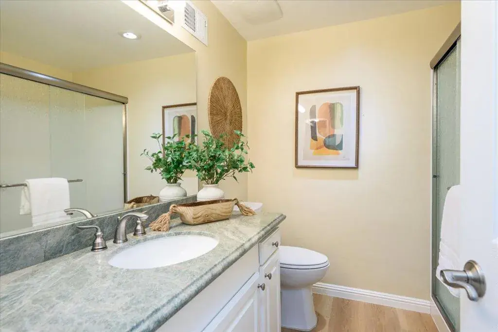 This Pristine, Bright & Updated 2 Story Bay Vista TH features 1,670 sq ft of comfortable living space & offering 3 BRs & 2 1/2 BAs. A welcoming Entry & large Living Rm continue to expand w/ the perfect space for a Den, Music Rm or Dining Rm (your choice), and leads to a Kitchen/Family Rm at the back, sparkling w/ modern appliances, including an electric cooktop range, dishwasher, microwave & refrigerator, all complemented by elegant granite countertops. The combination Kitchen/Family Room allows versatility of use as a Dining Rm, Play Rm or Office plus easy access to the rear yard. Next to the Kitchen is the convenience of a sep Laun Rm w/ more cabinets & full size W/D. The primary suite is a large retreat with a Walk-in closet and serene BA. Just add a comfortable chair or 2 for quick get-aways! The addl 2 BRs are roomy, light filled & offer closet organizers. Immac BAs w/ stone counters will catch the eye. Amenities include Hdwd Flrs. Newer Carpet, Shutters and Blinds, plus a Private enclosed Patio giving the enjoyment of nature & the outdoors & leading to a 2 Car Garage. Owned and loved for 50 yrs with Pride of Ownership and located w/in the SM-FC Elem School Dist, this home is perfect if you are seeking great maintenance, educ & rec opportunities. It’s a DON’T MISS!