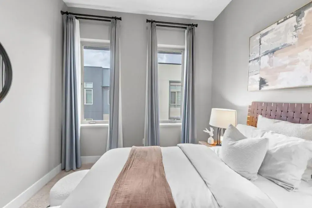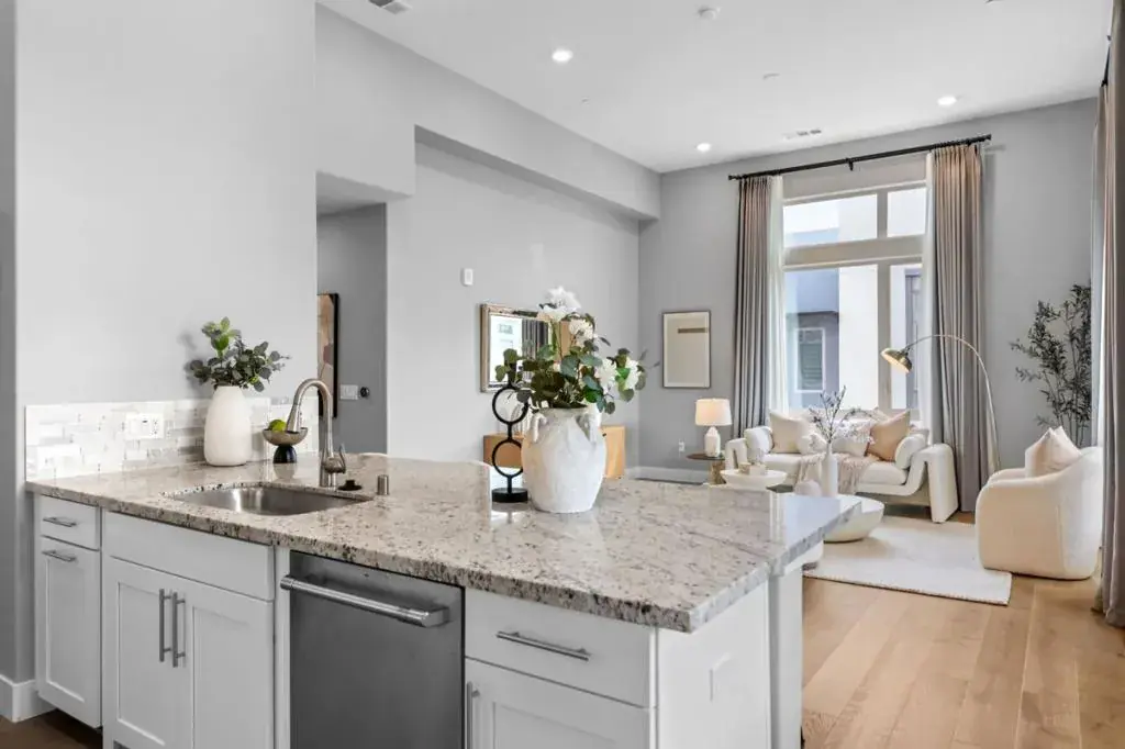 Welcome to Foster Square Community, a vibrant 55+ community in the heart of Foster City. Built in 2020, this modern condo offers an open floor plan with soaring ceilings, tall windows, and abundant natural light that fills every room. Tasteful flooring, recessed lighting, and thoughtful design details create an elegant yet comfortable living space. The home features three spacious bedrooms, including a primary en-suite retreat with a luxurious bathroom and oversized closet. The contemporary kitchen seamlessly connects to the living and dining areas, making it ideal for both daily living and entertaining. The modern, high-end chefs kitchen is outfitted with top-of-the-line appliances, sleek cabinetry, and a convenient breakfast bar, perfect for casual dining. Additional highlights include in-unit laundry, a large private balcony with neighborhood views, the Foster Square community amenities, and convenient access to popular shops, dining, and the Foster City lagoon trails. This unit includes a private, enclosed 2-car garage within the secure parking facility. Quick access to highway 101 makes Bay Area travel & daily commuting a breeze. Enjoy low-maintenance living in this welcoming community designed with comfort, connection, and convenience in mind.