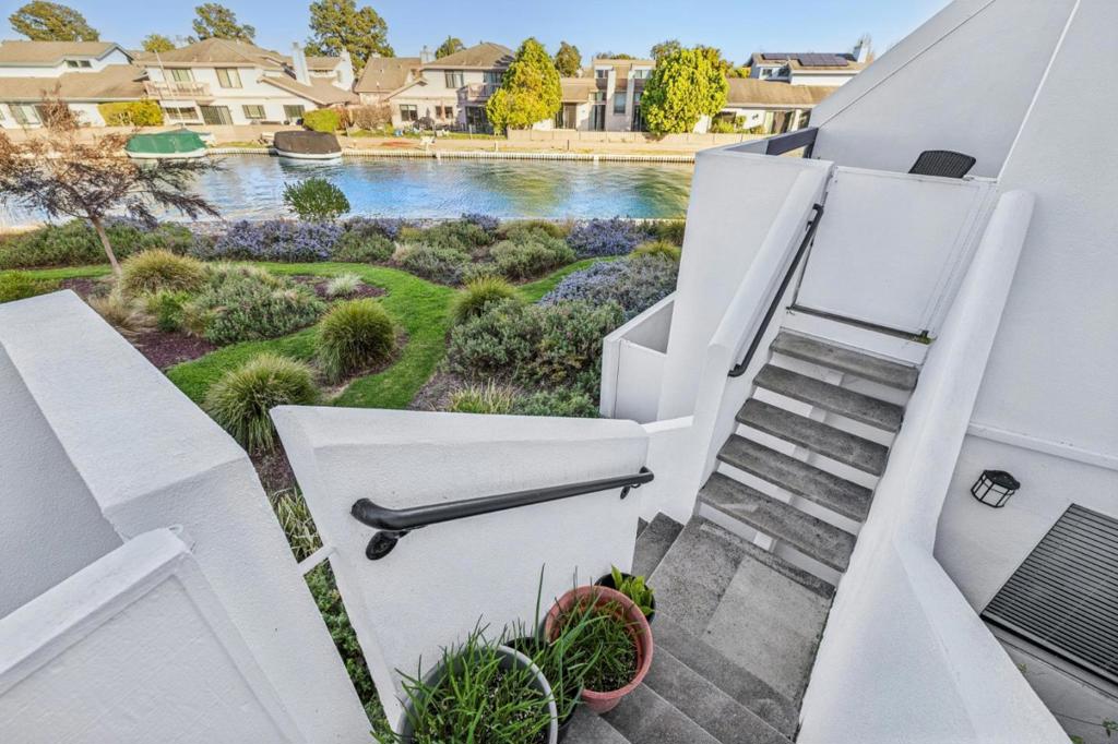 Resort living in stunning 3BR waterfront beauty in award winning signature community in Foster City! Drenched with sunlight in every room of this primely located largest floor plan E on The Islands. Open floor plan filled with amazing natural light, 3BR/2.5BA, 2140sqft. Tastefully remodeled with granite countertops, stainless steel kitchen appliances, elegant floor, marble fireplace. Soaring high ceiling and skylight in dining area. Second skylight in master bathroom. Vaulted ceiling in spacious master suite. Deck leads to atheistic garden and breathtaking lagoon. 2-car garage and plenty of storage on deck and in garage. Resort like association pool, spa and clubhouse. HOA pays water and sewer, garbage, building insurance. A dream home to enjoy!